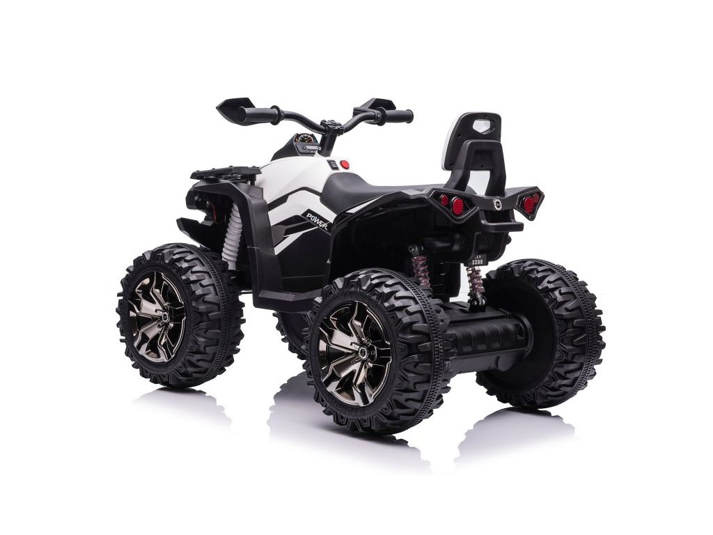 A gyerekeknek szánt ATV Power elektromos négykerekű 12V 10Ah kapacitású akkumulátorral és négy 45W teljesítményű motorral rendelkezik, ami azt jelenti, hogy a négykerekű 4x4-es hajtású. Az EVA hab kerekek és az ökológiai bőrből készült ülés gondoskodik a kényelmes utazásról.