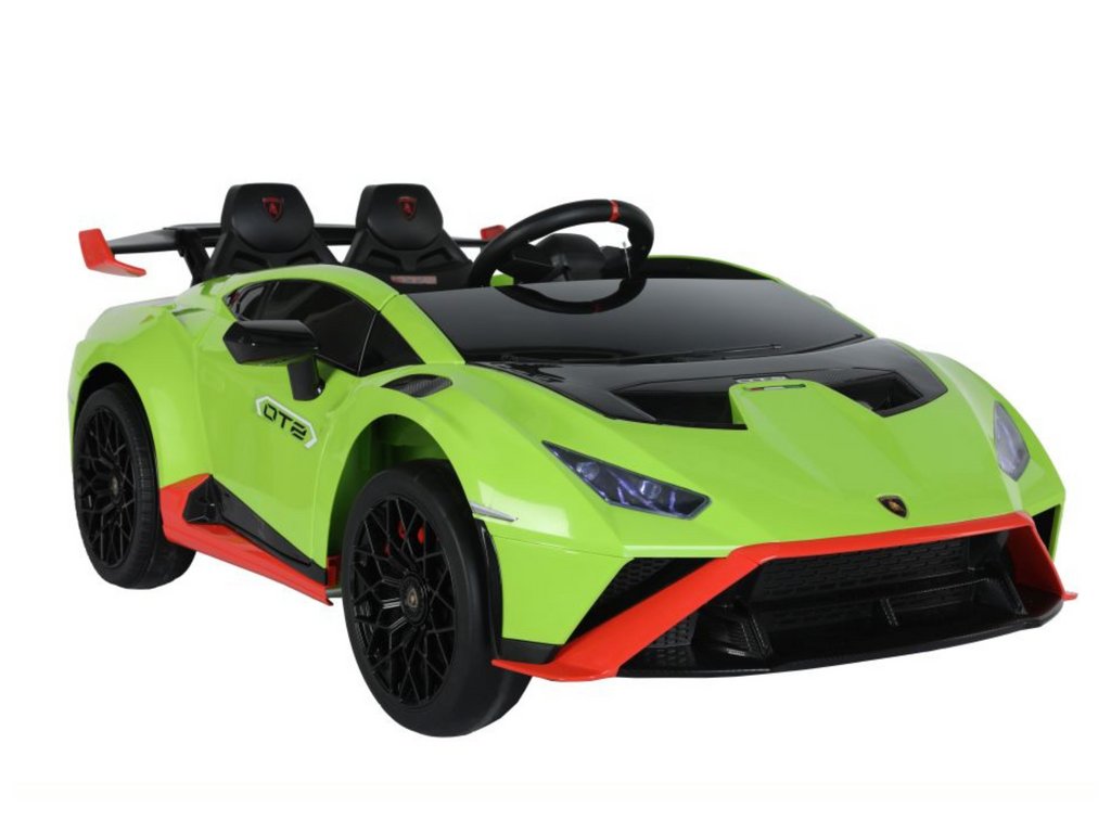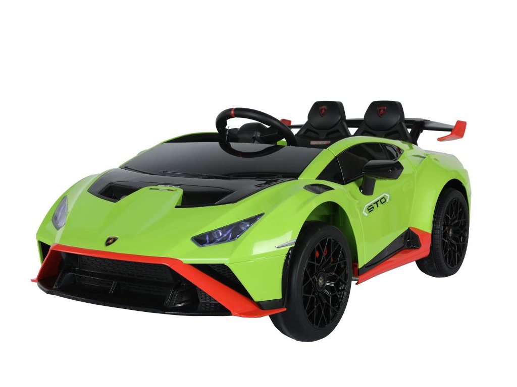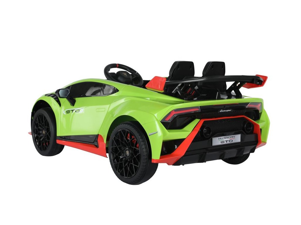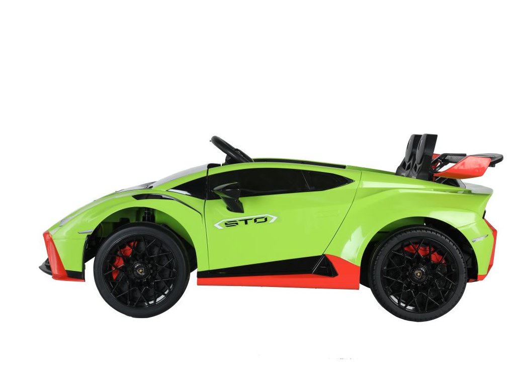 A Lamborghini STO elektromos autó két motorral rendelkezik, amelyek teljesítménye 45 W, ami azt jelenti, hogy az autó 2x2 hajtású. Az első EVA habkerekek kényelmes vezetést biztosítanak. Az SD-kártya, USB- és Bluetooth- bemenettel ellátott zenepanel minden bizonnyal kellemesebbé teszi az utazást a gyermek számára . A játékautó teherbírása 30 kg . A játékautó első és hátsó LED világítással és nyitható ajtókkal rendelkezik.