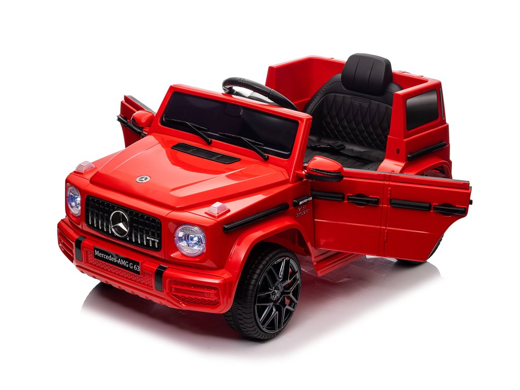 A Mercedes Benz G63 cabrio piros gyerek elektromos autó ideális választás a luxusautók kis rajongóinak. A 12 V-os 4,5 Ah-s akkumulátorral és a 2,4 GHz-es vezérlővel minden utazáshoz biztonságot és irányítást biztosít.