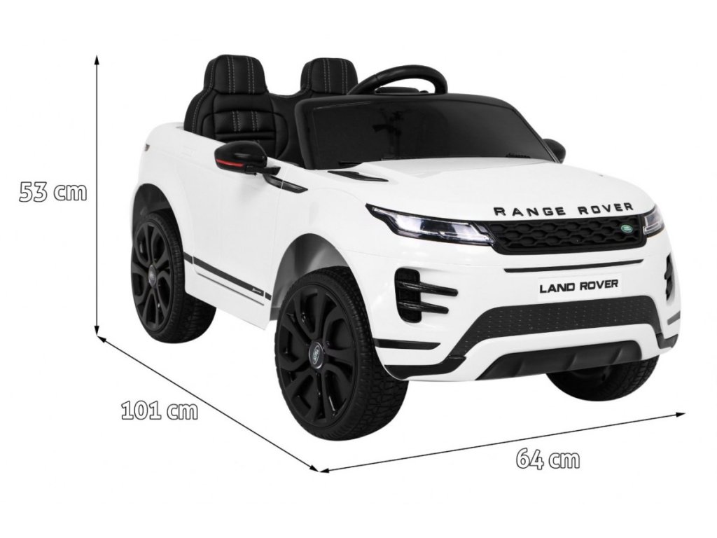 Gyermek elektromos autó Evoque a Range Rover engedélyével. Kis autó minden 30 kg-ig terjedő teherbírású gyermek számára készült. Két 35 W-os villanymotorral van felszerelve, és az EVA kerekekkel együtt különböző típusú felületeket tud kezelni. A gyermek kényelmes formájú, puha ökológiai bőrből készült ülésben ül.