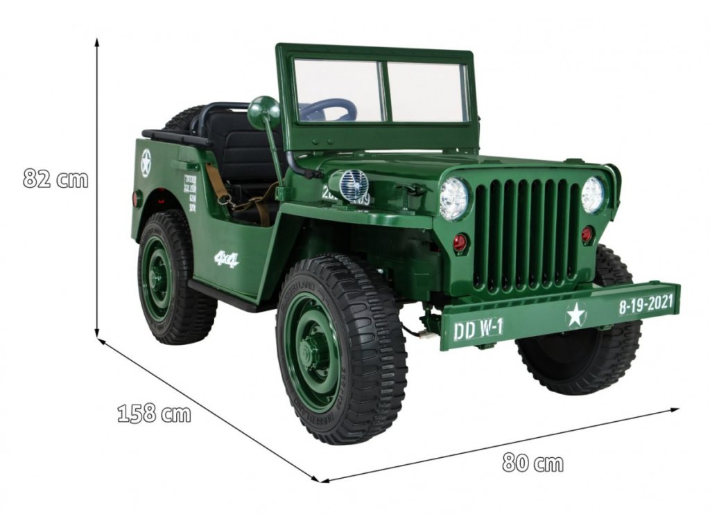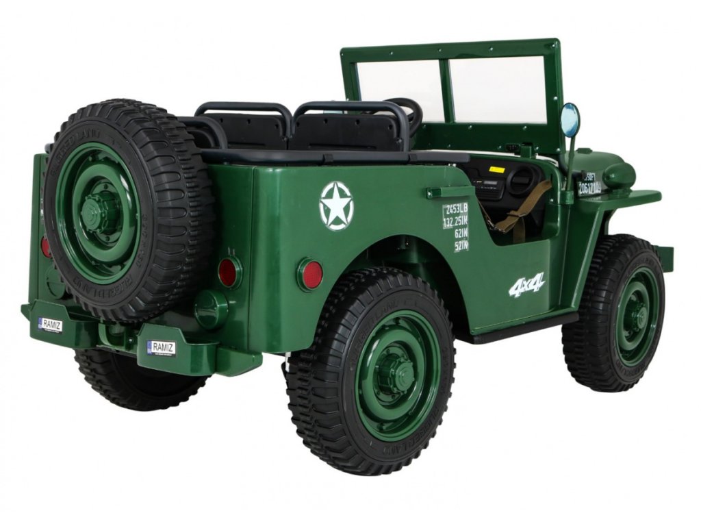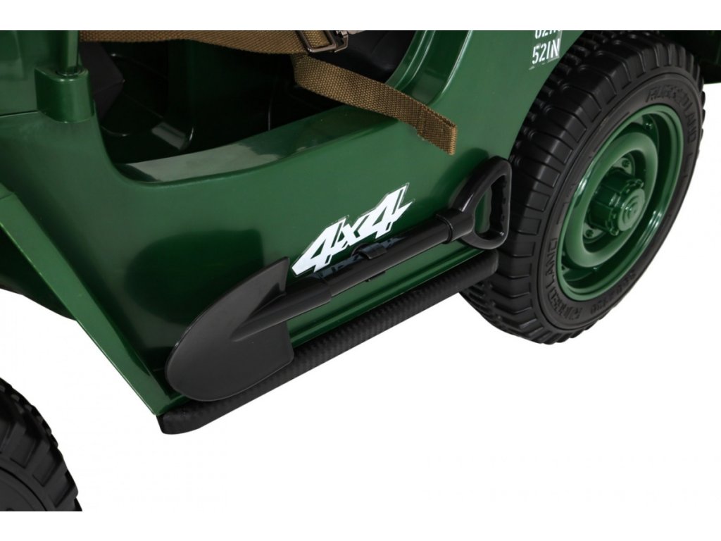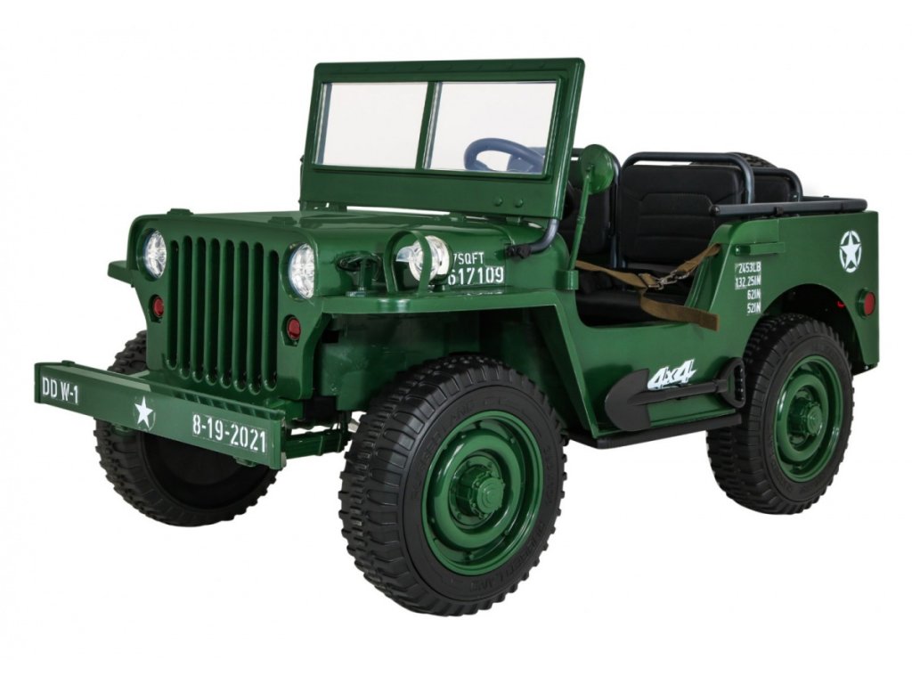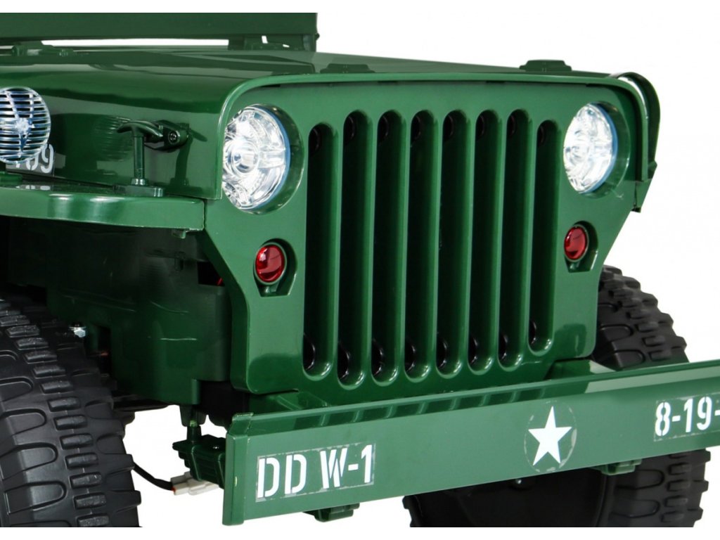 A Willys elektromos gyerekautó az EVA habkerekeknek, valamint az erős motornak és akkumulátornak köszönhetően alkalmazkodik a különböző típusú felületekhez. A négykerék-meghajtásnak köszönhetően a gyermek terepre tud menni. A Willys katonai autó 60 kg teherbírással rendelkezik, így elviheti barátját vagy testvérét egy körre. Hang- és fényeffektusok minden bizonnyal kellemesebbé teszik az utazást. Használhatja a Mini Jack , USB , MP3 vagy Bluetooth csatlakozást a zenepanelen.