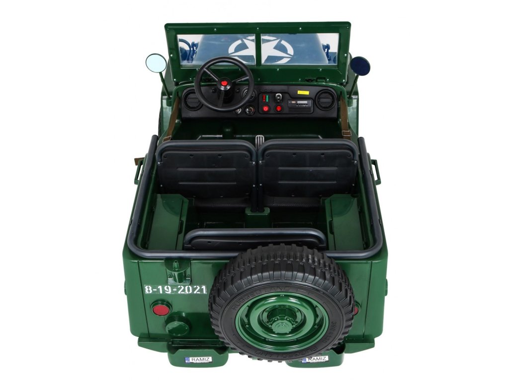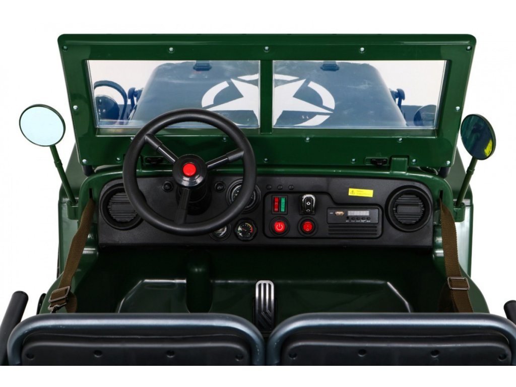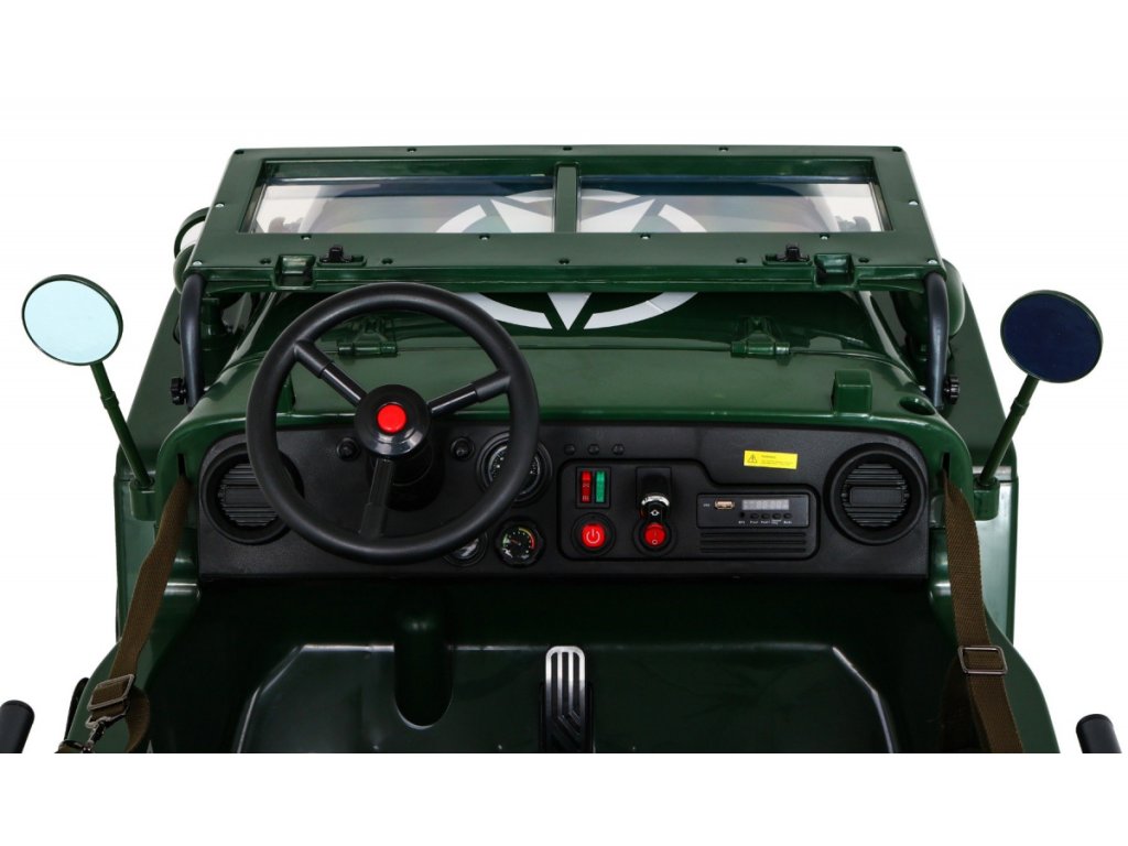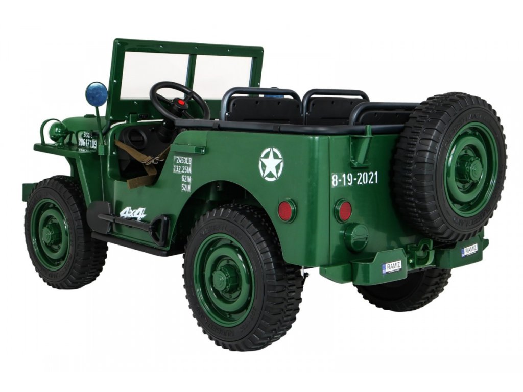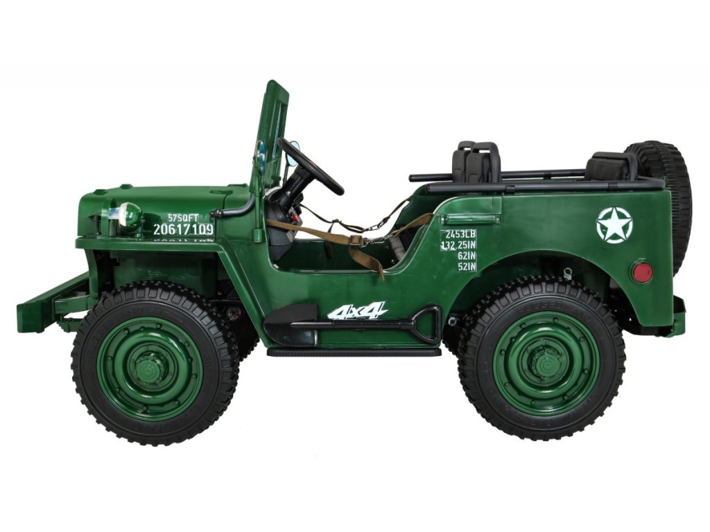 A Willys elektromos gyerekautó az EVA habkerekeknek, valamint az erős motornak és akkumulátornak köszönhetően alkalmazkodik a különböző típusú felületekhez. A négykerék-meghajtásnak köszönhetően a gyermek terepre tud menni. A Willys katonai autó 60 kg teherbírással rendelkezik, így elviheti barátját vagy testvérét egy körre. Hang- és fényeffektusok minden bizonnyal kellemesebbé teszik az utazást. Használhatja a Mini Jack , USB , MP3 vagy Bluetooth csatlakozást a zenepanelen.