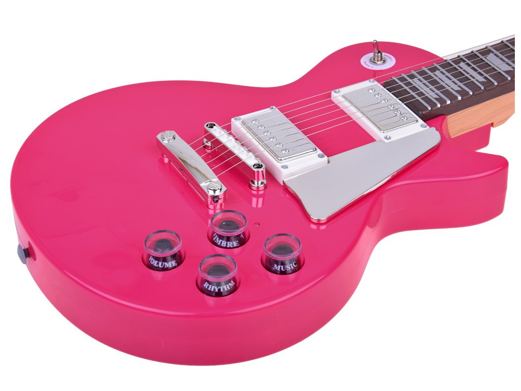 Růžová elektrická kytara je ideální volbou pro malé hudebníky, kteří chtějí začít své hudební dobrodružství již od útlého věku. Hračka byla navržena tak, aby se podobala skutečnému nástroji, a poskytuje tak realistický zážitek ze hry.