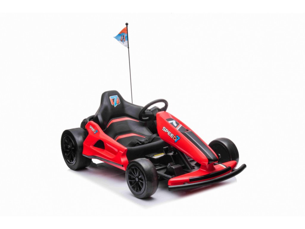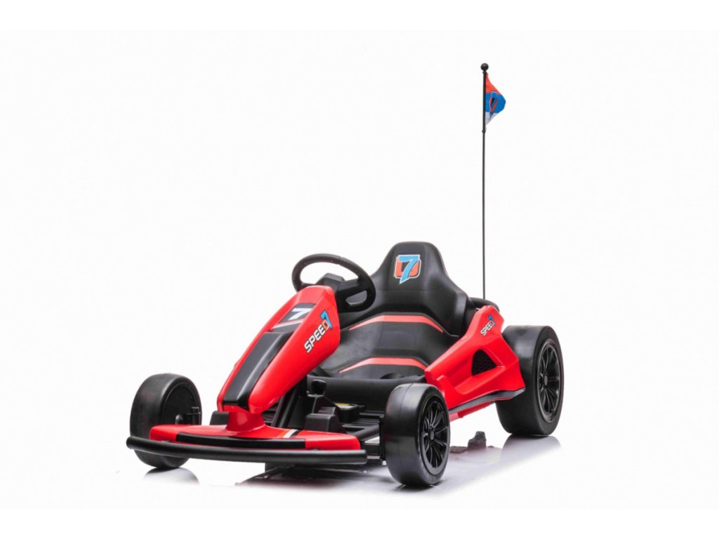 Egy 24V 7Ah akkumulátorral és két 150W-os motorral szerelt elektromos gyerek gokart sem hiányozhat egyetlen gyerekgarázsból sem. A gokart ökológiai bőrből készült sportos formájú üléssel van felszerelve.