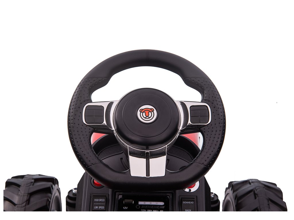 A traktor 2,4 GHz-es távirányítóval van felszerelve. A vezérlő lehetővé teszi a jármű minden irányba történő vezetését, sebességszabályozást, és fel van szerelve egy STOP biztonsági gombbal, amely azonnal kikapcsolja az összes funkciót. A biztonságról a biztonsági övek is gondoskodnak.