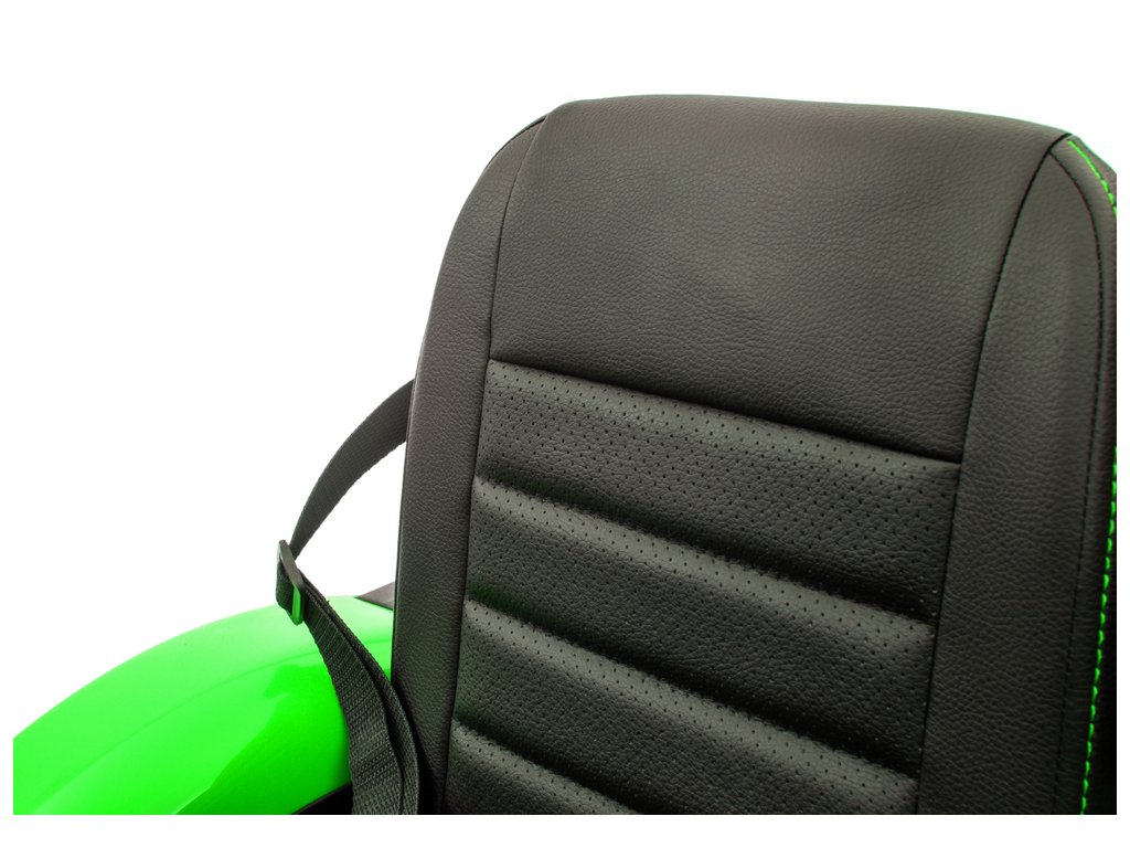 Az utánfutóval ellátott elektromos gyerektraktor EVA hab kerekekkel rendelkezik, amelyek csendesek és jól bírják az egyenetlen terepet. A gyermek kényelmesen kialakított, ökológiai bőrből készült ülésben ül , biztonsági övvel . Terepen 3-5 km/h sebességgel haladhatsz.