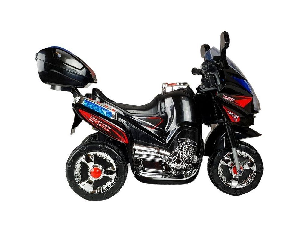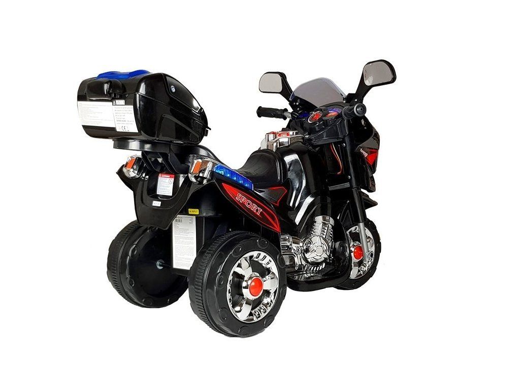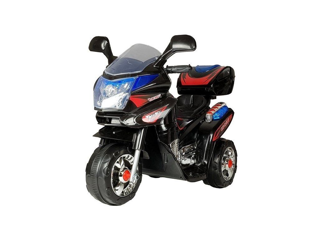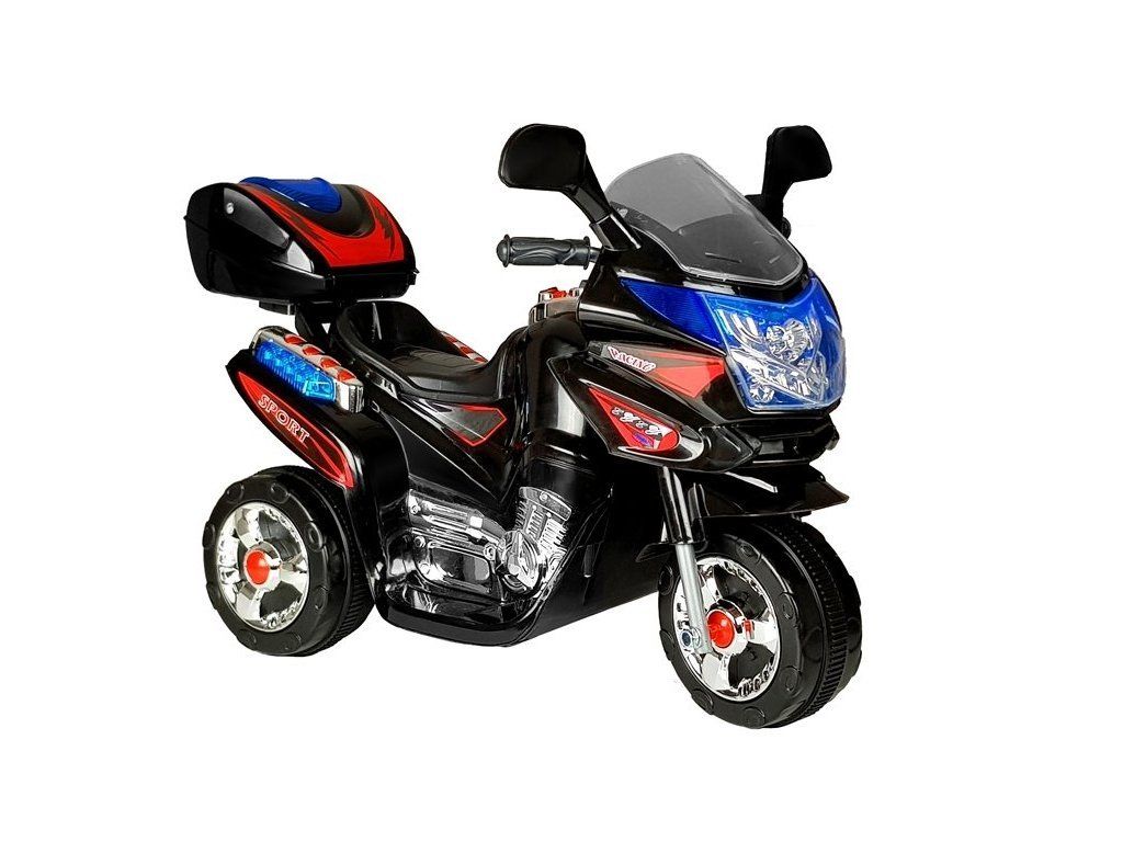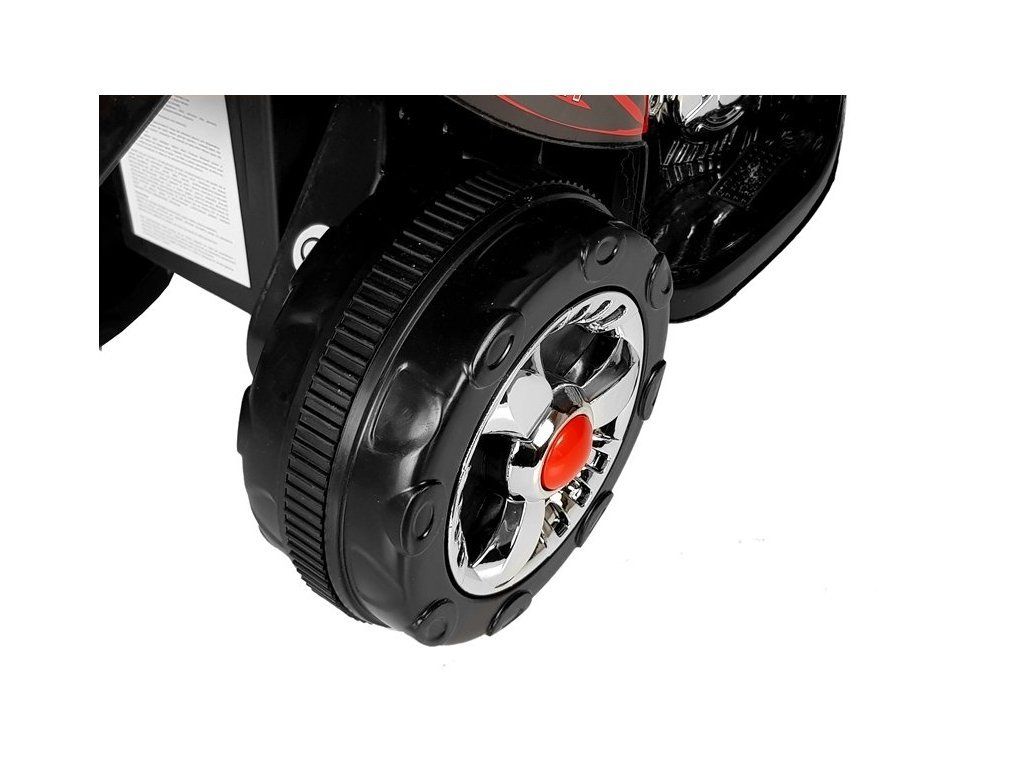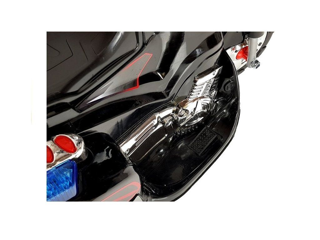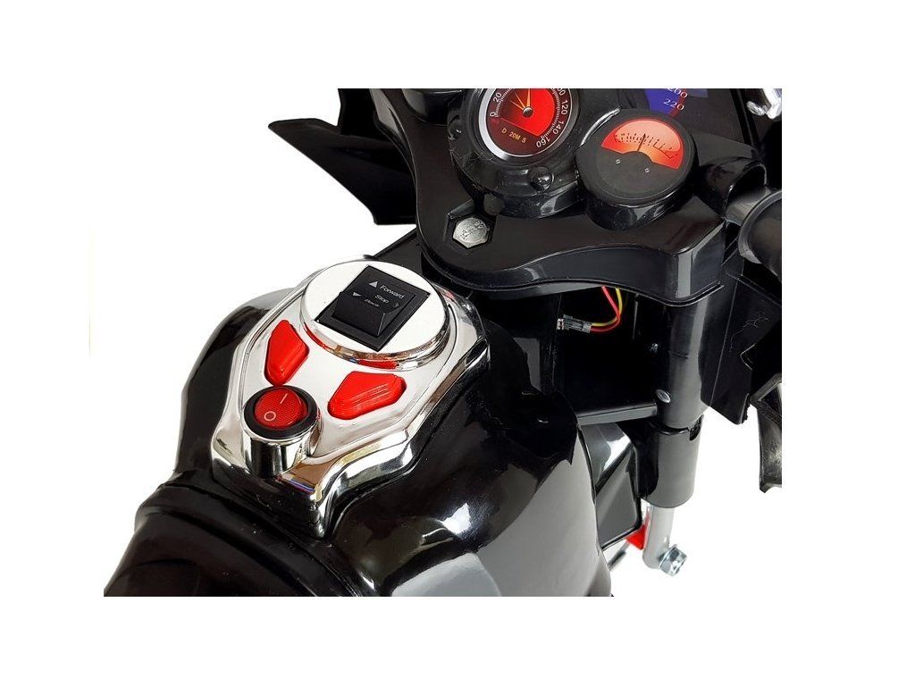 A piros elektromos motorkerékpár 6V4,5Ah-s akkumulátorral és erős 18W-os motorral van felszerelve, ezeknek az alkatrészeknek a duója körülbelül 4 km/h sebesség elérését teszi lehetővé, ami minden gyermek számára remek szórakozást nyújt. Sőt: ennek a modellnek két fokozata van – előre és hátra, ami sokkal könnyebbé teszi a szórakozást. További elemek, amelyek ennek a motorkerékpárnak a fő előnyei: átlátszó motorháztető, oldalsó tükrök és LED világítás, amelyek növelik a gyermek láthatóságát az úton. Hátul egy nyíló csomagtartó található, amelyben a kis sofőr tárolhatja kincseit. Fontos elem a kürt és a zene gombok a kormánykerék területén.