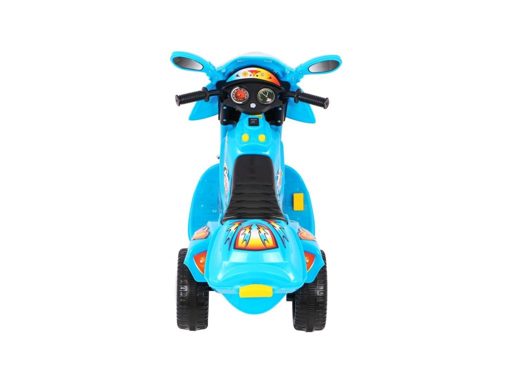 Erős műanyagokkal, minőségi anyagokkal és kidolgozással rendelkező gyerekmotorkerékpár . Előre-hátra megy – a tankon lévő kapcsoló és a lépcsőn lévő lábpedál vezérli. Ha a pedál nincs lenyomva, a motor tolóereje helyettesíti a féket. A motor világít, és természetesen hanghatások is vannak. Az egyedi motorkerékpár nyitható csomagtartóval rendelkezik. A motorkerékpár 3 éves kortól alkalmas gyermekek számára.