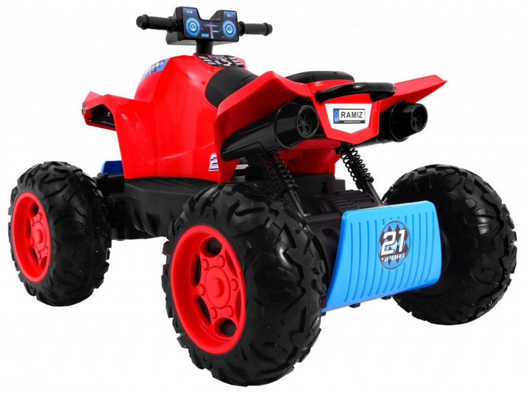 A quad előre-hátra megy, és van lehetőség a gyorsításra. A kerekek EVA hab, csendesek és alkalmazkodnak a különböző tereptípusokhoz. Négy erős villanymotorral rendelkezik, amelyek enyhe lejtőn vagy burkolatlan felületen is képesek felmenni. Az ülés nagyon kényelmes, ergonomikus kialakítású, így a gyerek ismét szívesen ül a quad volánja mögé.