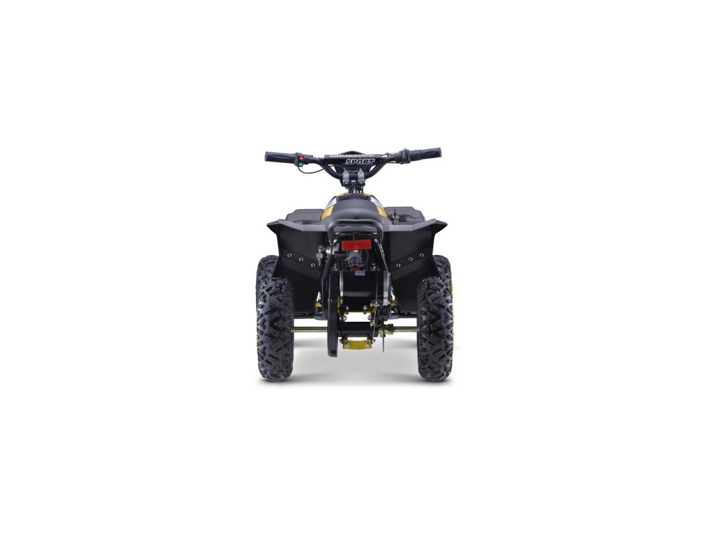 A négykerekű előnye az ökológiai bőrből készült ülés és a 30 cm átmérőjű, 10 cm széles felfújható kerekek. A quad elülső LED lámpákkal és kürttel rendelkezik. A quad első és hátsó tárcsafékekkel rendelkezik. A quad nem vezérelhető a távirányítóval. A quad kulccsal indítható, első és hátsó lengéscsillapítókkal rendelkezik.