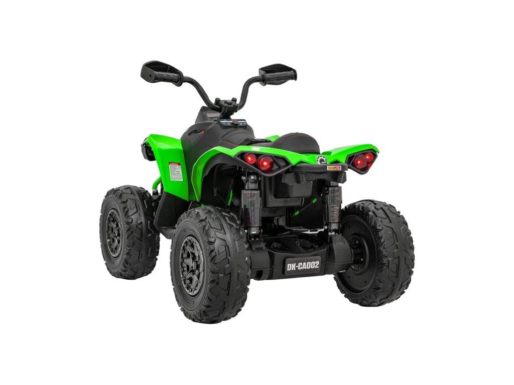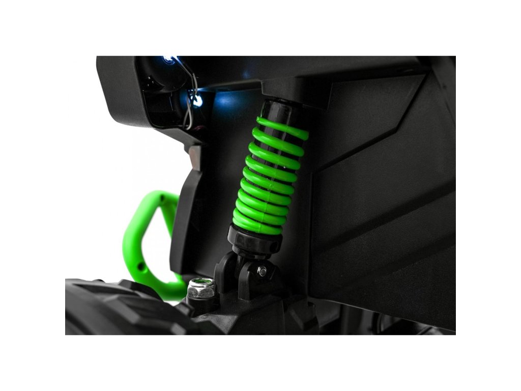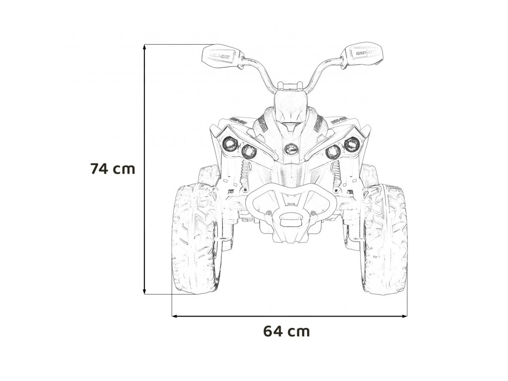 A gyermek elektromos quad két 400 W összteljesítményű motorral és széles EVA hab kerekekkel van felszerelve. A quad könnyedén megbirkózik különféle terepen, burkolatlan felületekkel és dombokkal.