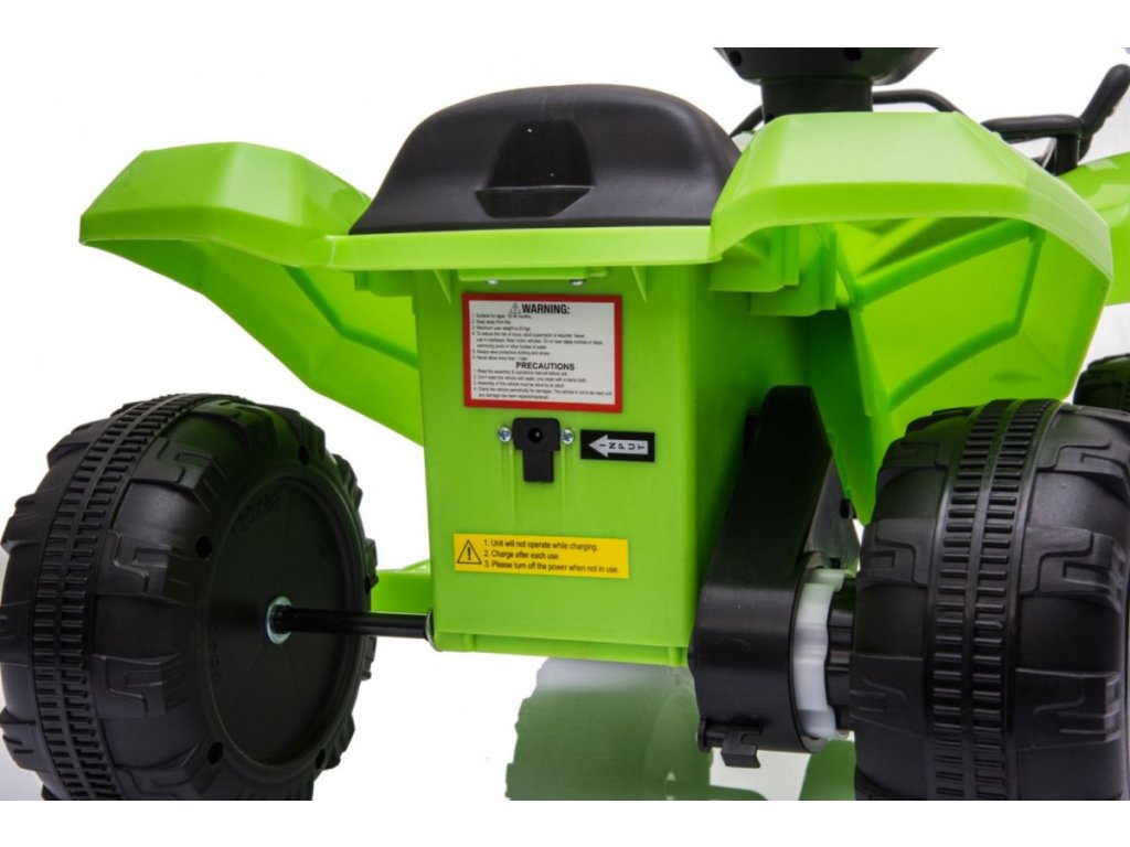 A gyermek elektromos négykerekű Storm mérete 1,5-3 éves kor közötti gyermekek számára alkalmas, maximális teherbírása 20 kg . Kényelmes formájú üléssel, széles kerekekkel, hang- és fényeffektusokkal rendelkezik. A zenei panel AUX bemenettel, USB-vel és előre felvett dallamokkal rendelkezik. A gyermek útközben az elülső LED- lámpákkal lesz megvilágítva.