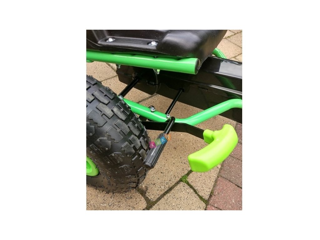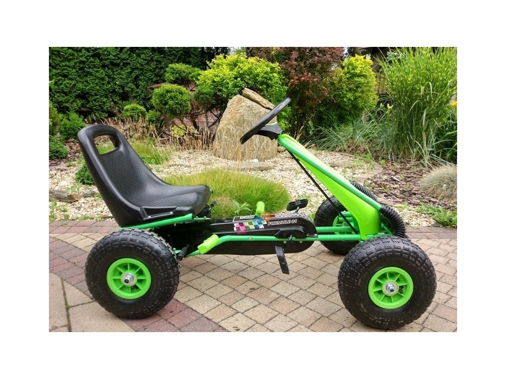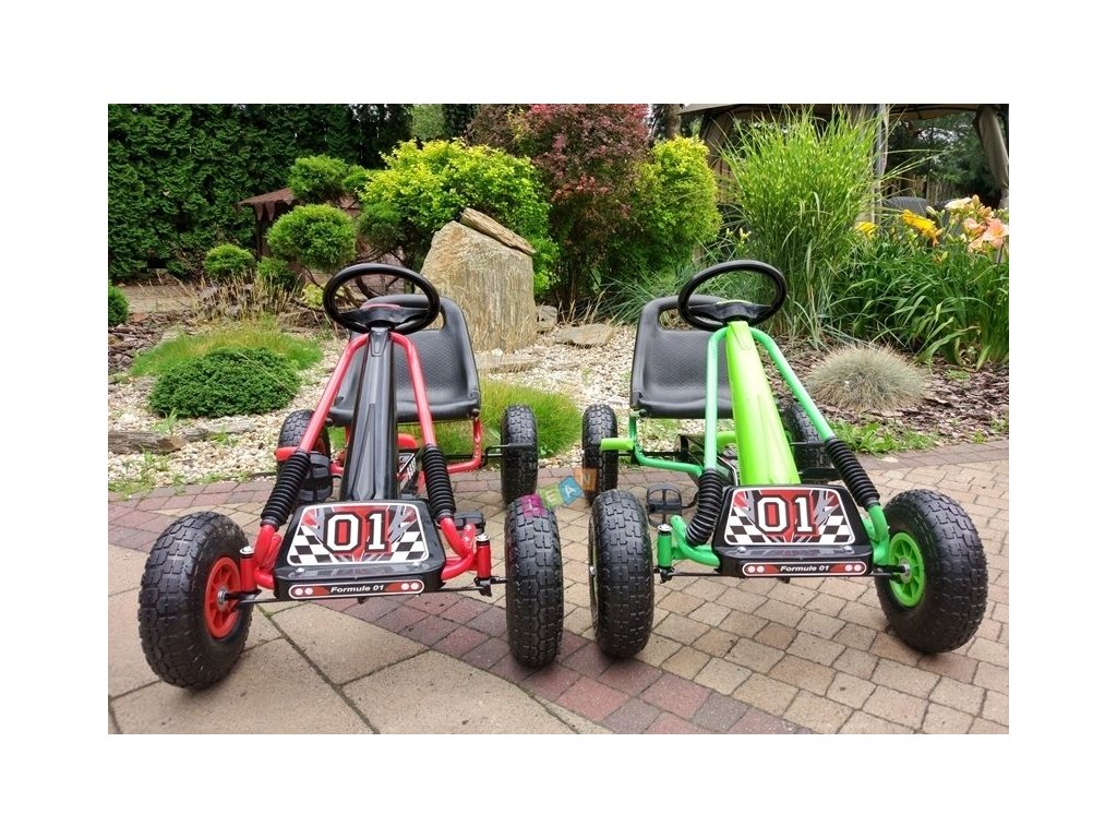 A formula 01 gyerek gokart biztonságos és kényelmes. Speciálisan kialakított kerettel és egyedi kialakítással rendelkezik. Mindenekelőtt felfújható gumikerekekkel rendelkezik, amelyeknek köszönhetően kényelmesebbé válik az utazás. A gokart két kerék kézifékkel és 3 fokozatban állítható üléssel rendelkezik.