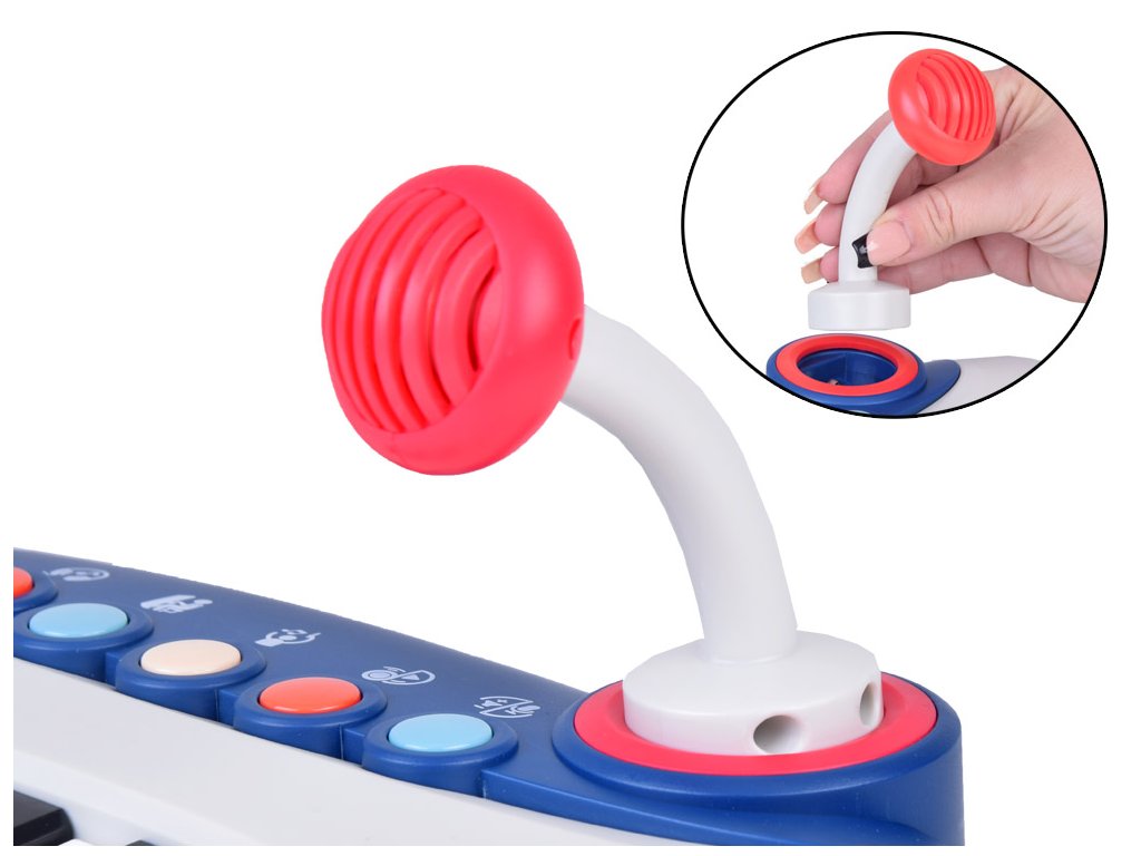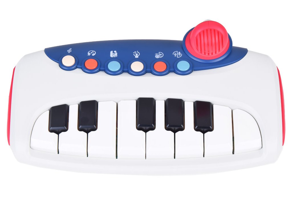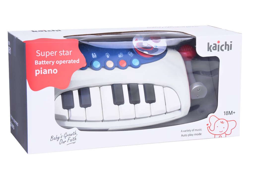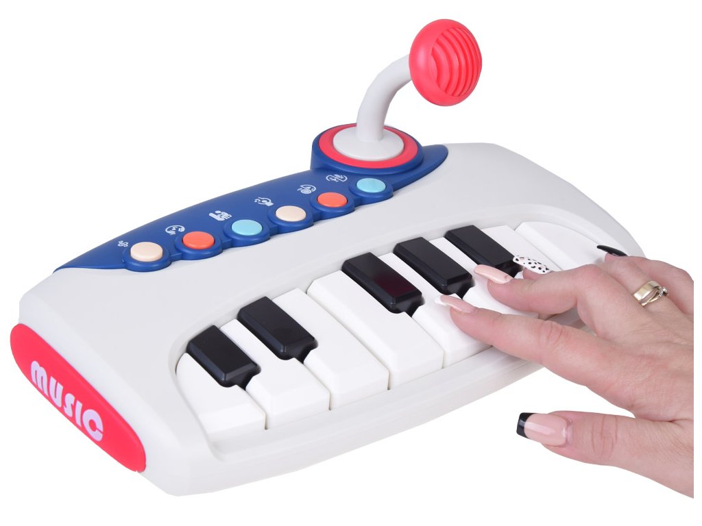 A zongorabillentyűk/gombok megnyomásakor a gyermek hangokat és dallamokat fog hallani. Ezenkívül mikrofonnal is fel van szerelve, amelybe énekelni lehet.
