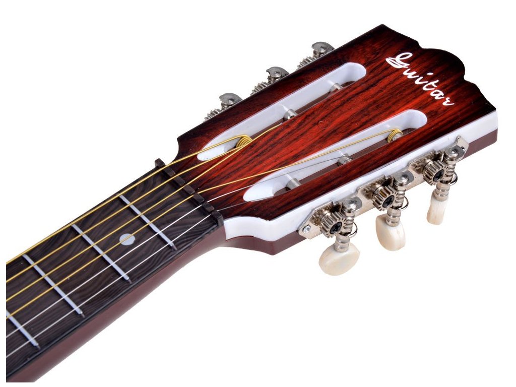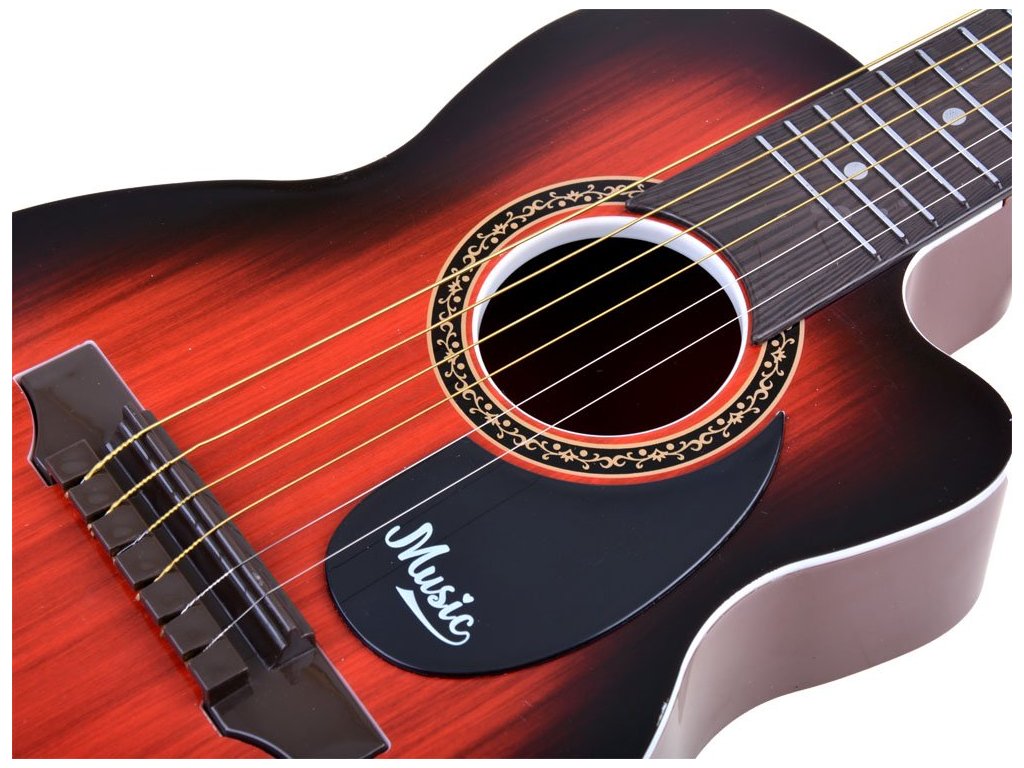 A játék fa árnyékolású. Hat fém húrral és állítható nyakkal rendelkezik .