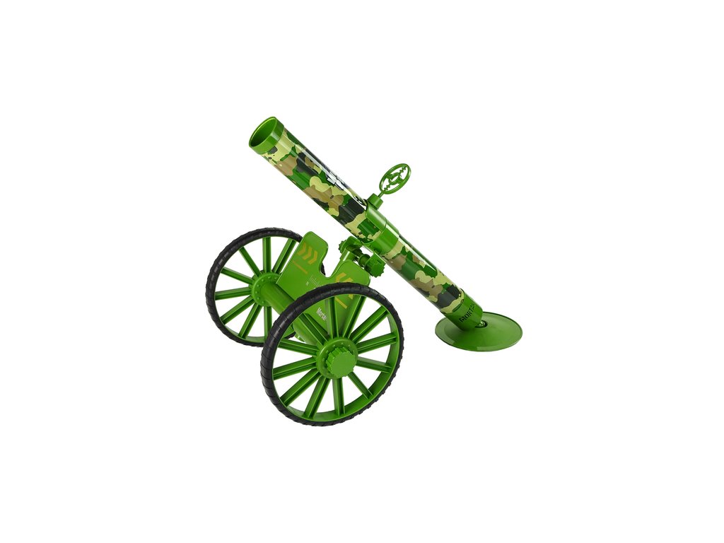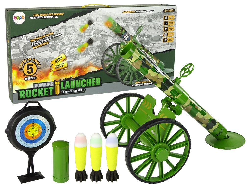 A gyerekágyú minden kis katonarajongó számára remek szórakozást nyújt. A kilövő változtatja a dőlésszöget, és van egy állványa, amely beállítás után a megfelelő helyzetben tartja.