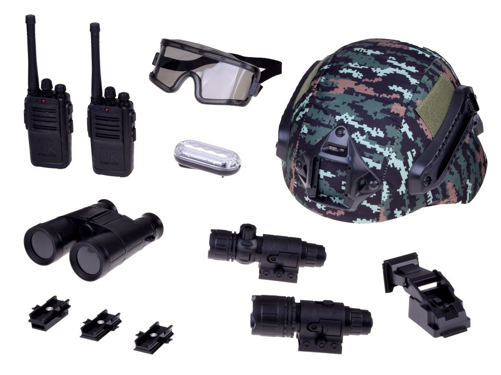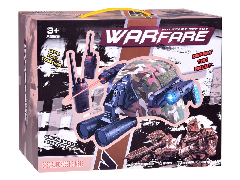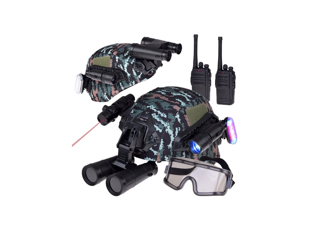 Ideális készlet minden gyermek számára, aki arról álmodik, hogy a jövőben bátor katonává váljon. Ez a szuper sisak még valósághűbbé teszi a szórakozást. A sisak remek kiegészítője lesz az álarcosbáli jelmeznek is.