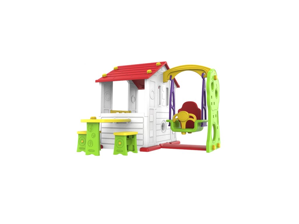 Gyermek kerti ház 3 az 1-ben piros tetővel