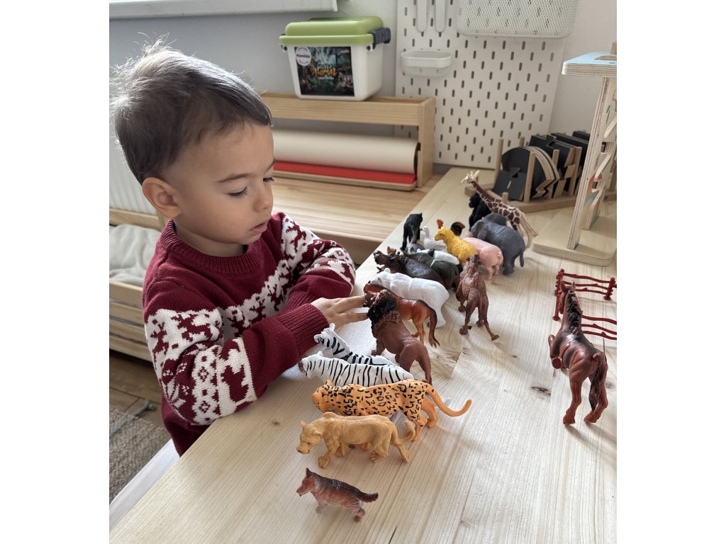 Ez az állatkészlet tökéletes azoknak a kis felfedezőknek, akik szeretik az állatokat, és szeretnének többet megtudni róluk. A készlet valósághű műanyag állatok széles választékát tartalmazza, például oroszlánokat, zebrákat, zsiráfokat, tigriseket, elefántokat, lovakat és még sok mást. Minden állat részletgazdag és kiváló minőségű anyagokból készült, amelyek biztonságosak a gyermekek számára. A készlet egy praktikus tárolótáskát is tartalmaz a könnyű hordozhatóság és tárolás érdekében. A gyerekek játszhatnak az egyes állatokkal, kerítést építhetnek és különféle jeleneteket készíthetnek, ami ösztönzi kreativitásukat és fantáziájukat.