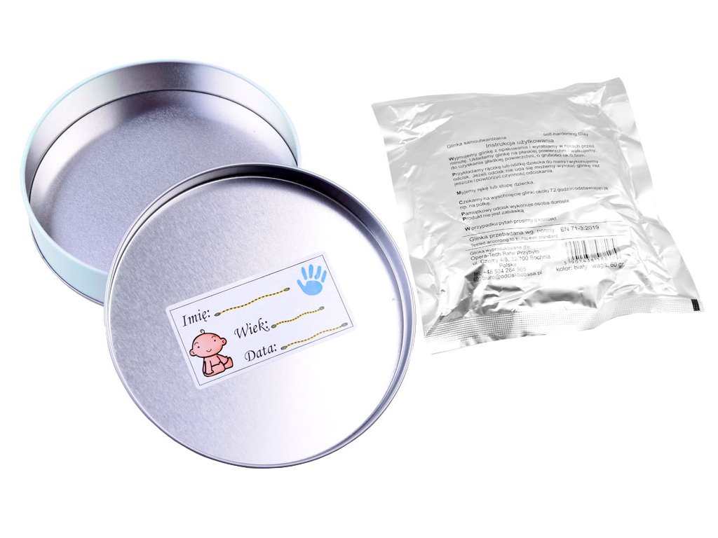 A készlet egy fémből, díszdobozból és modellező agyagból áll. Az anyag kicsomagolás után azonnal használatra kész. Puha, gyengéd és képlékeny, így a legkisebb gyermek számára sem okoz gondot, hogy benyomást keltsen. Maga az eljárás nagyon egyszerű. A masszát le kell venni a fóliáról, és kézben kell dagasztani kb. 1 percig, majd golyót formázni, amit a doboz fedelénél kicsit nagyobb körre kell görgetni. A fedél segítségével az anyagból kivághat egy megfelelő gyűrűt, amelyet beilleszt a dobozba. Láb- vagy kézlenyomat elkészítése után bottal vagy hasonló tárggyal felírhatod a gyermek nevét és/vagy a gyártás dátumát. A nyomatot körülbelül 4 napig kell hagyni száradni. Az anyag száradását nem ajánlott felgyorsítani (például sütőben vagy radiátoron), hogy ne repedjen meg az anyag.