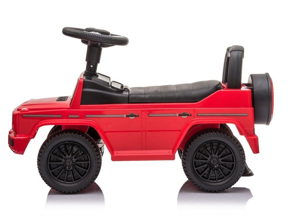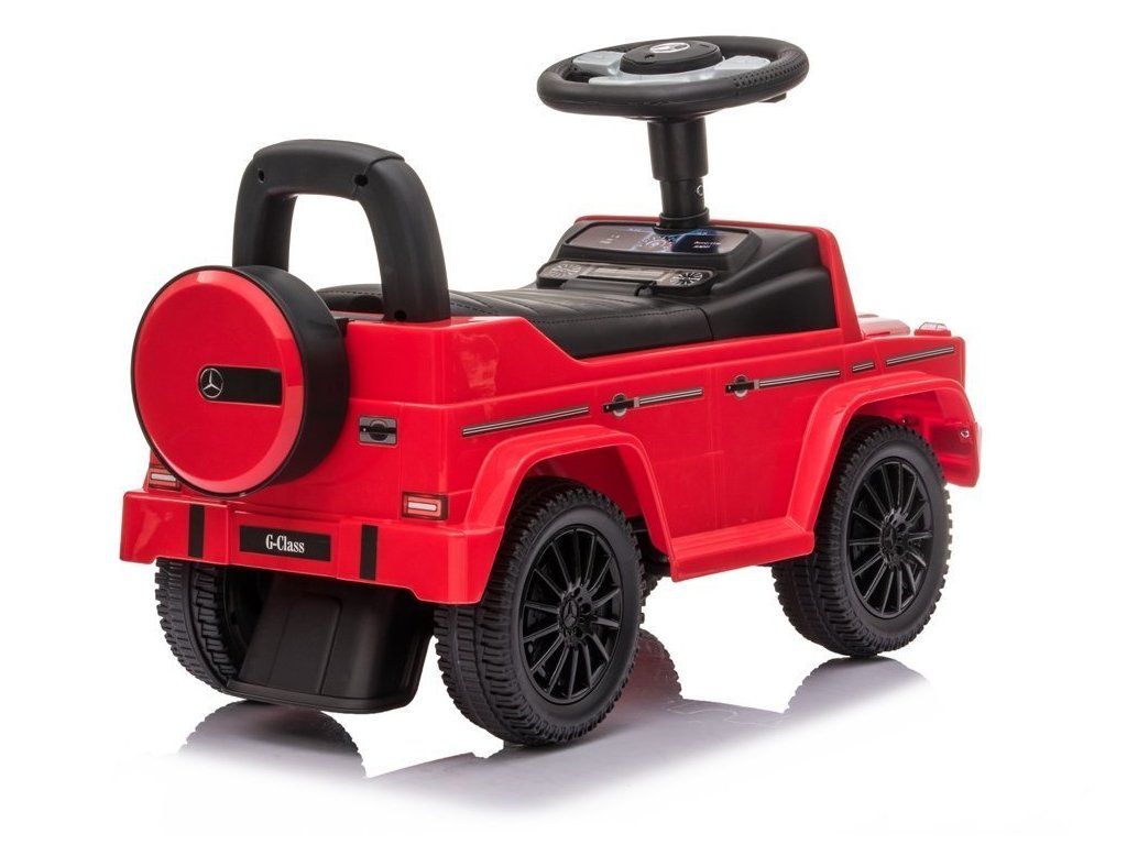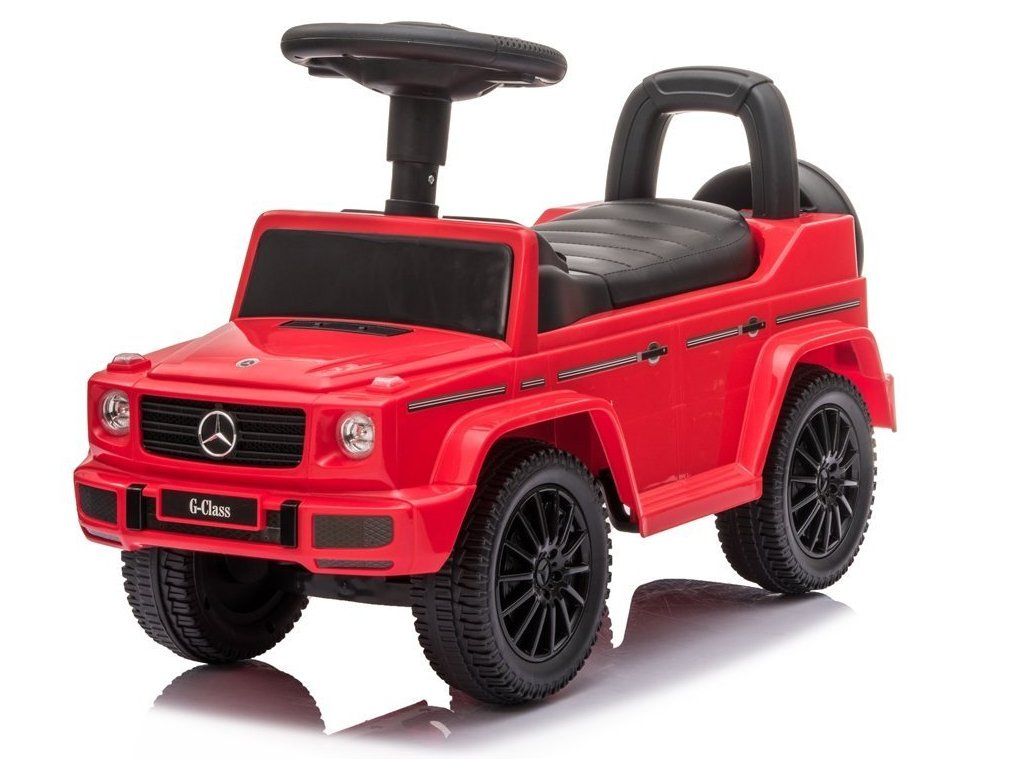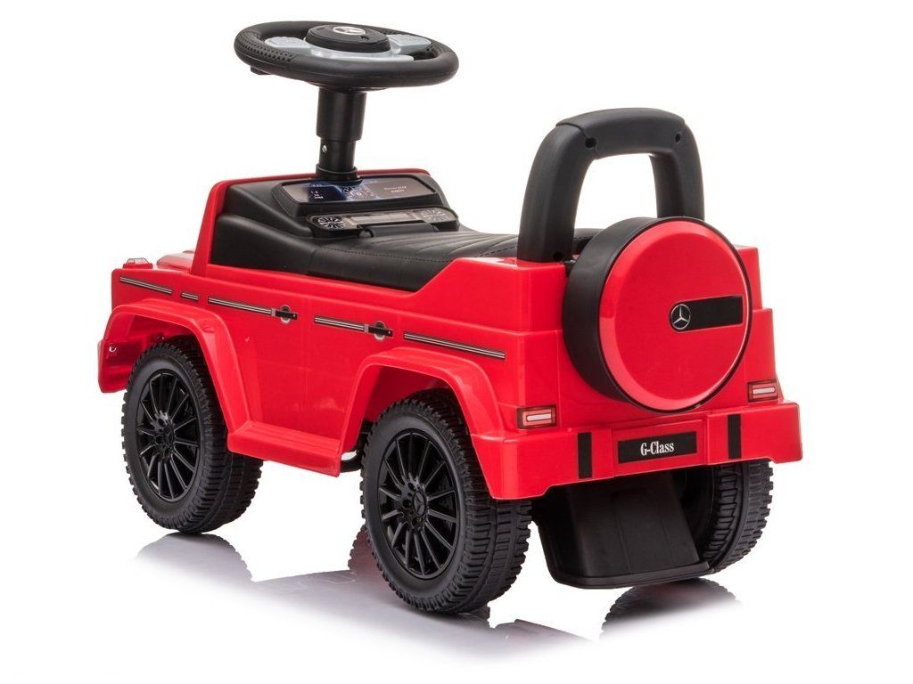 Az eredeti Mercedes-Benz licenccel rendelkező kidobógép bőrüléssel rendelkezik, amely kényelmes utazást biztosít a gyermekek számára. Az ülés alatt van egy kis csomagtér, ahol tárolhatod az apróbb tárgyakat. A kidobó kürtje van a kormányon, a babakocsi pedig járó motor hangját adja.