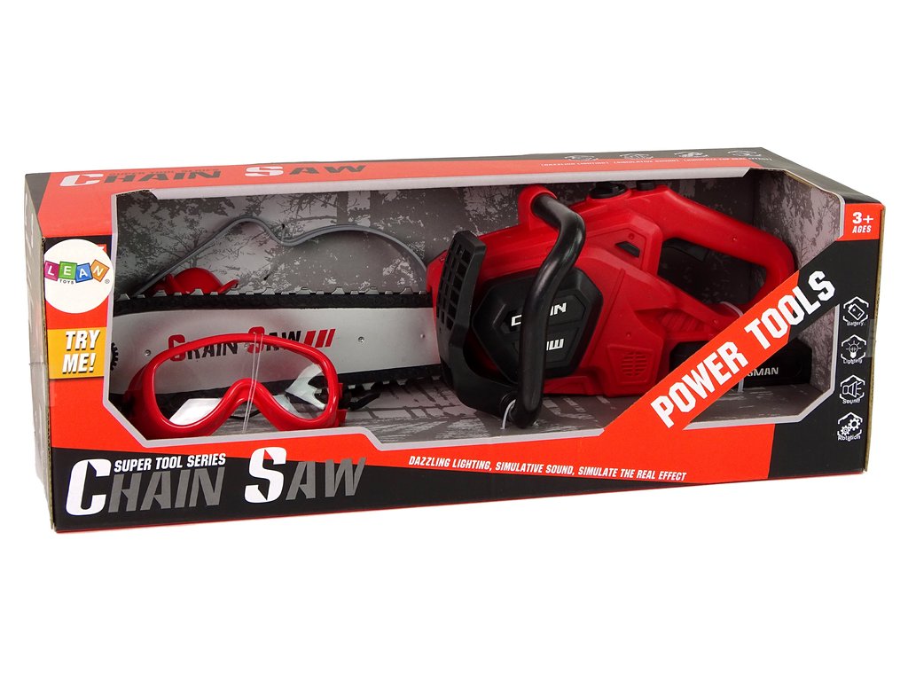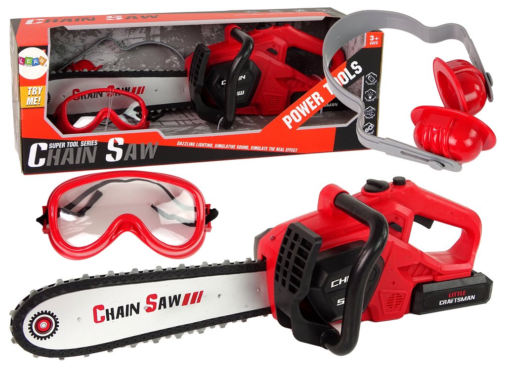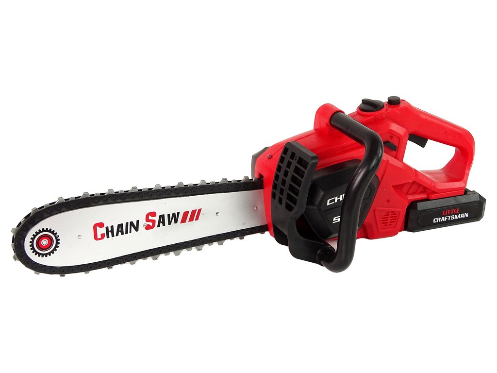 Bemutatunk egy láncfűrészt , aminek köszönhetően a kis ezermester tud segíteni az apróbb kerti munkákban. A bal oldalon található egy gomb, amely elindítja a fűrészt. Közvetlenül a bekapcsolás után a fűrész jellegzetes hangja hallatszik. De ez még nem ér véget, nyomjon meg egy másik gombot a lánc forgásának aktiválásához. Nincs más dolga, mint elkezdeni a kisebb munkákat a kertben vagy a műhelyben.