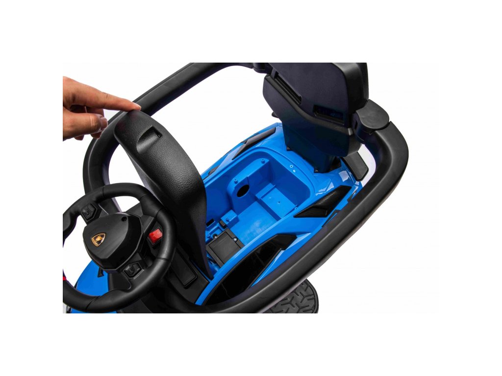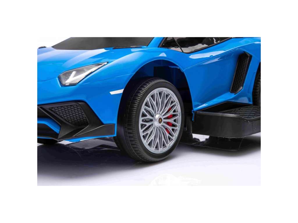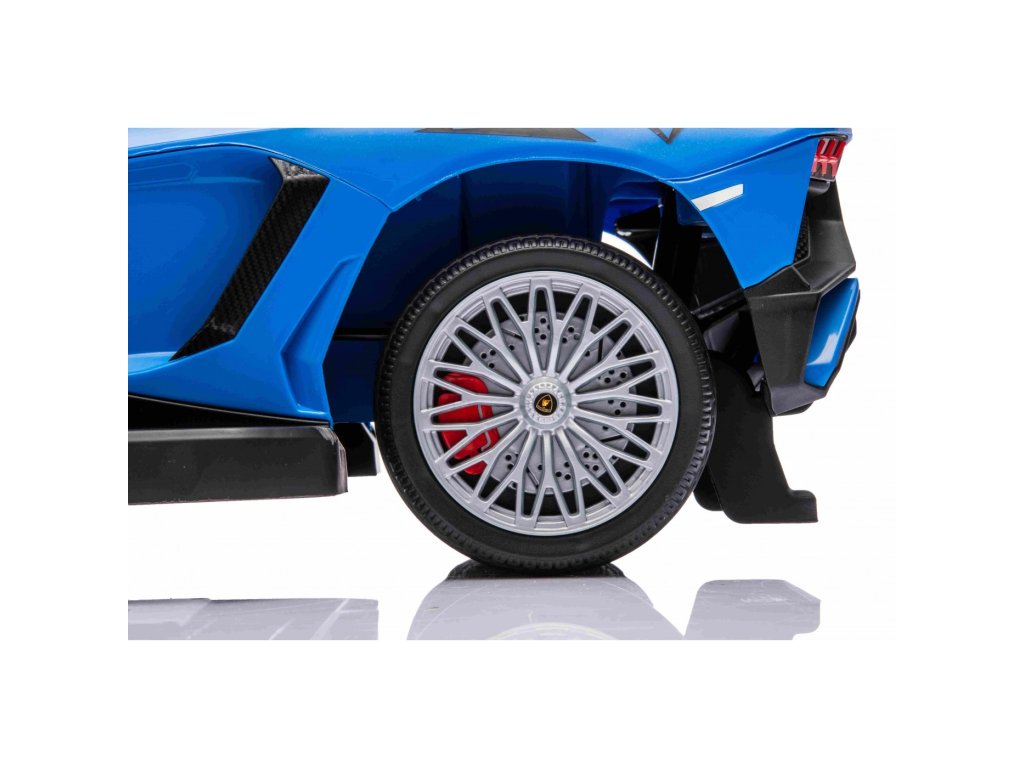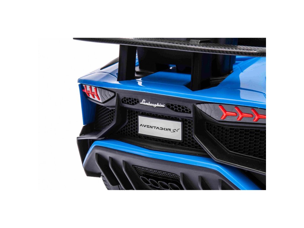 A Lamborghini Aventador SV gyerekek kidobóját minőségi anyag jellemzi, emellett nagyméretű gumikerekekkel és stabil felépítéssel rendelkezik. A maximális teherbírás 30 kg . A lökhárító elülső LED-lámpákkal és a kormányon lévő dallamokkal ellátott gombokkal van felszerelve.