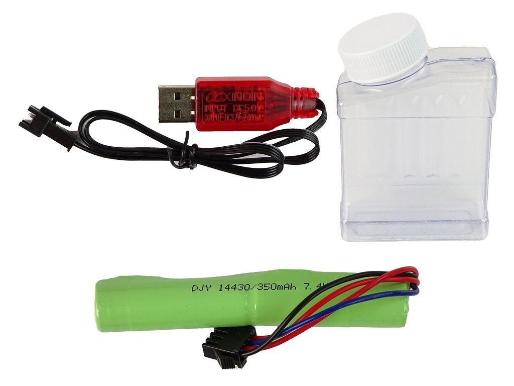 - Pistole je napájena baterií, která je součásti balení (včetně USB kabelu).