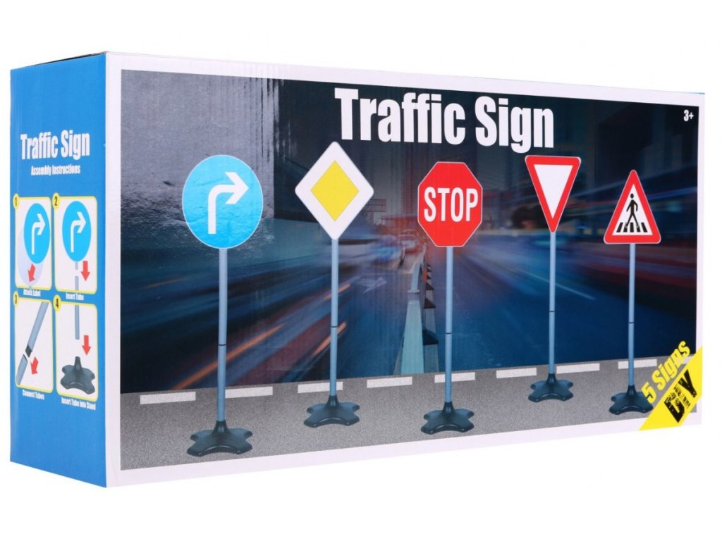 Egy játék, amely minden kis "sofőrt" megörvendeztet. Ideális otthonra és kertbe. A közlekedési táblákat nagy területen el lehet helyezni, így valódi kommunikációs lánc jön létre. Nagyszerűek biciklizéskor vagy elektromos autóban. Ezzel a játékkal a gyermek gyorsan megtanulja a közlekedési szabályokat. Az útjelző táblák szilárd anyagokból készültek, a részletekre odafigyelve.