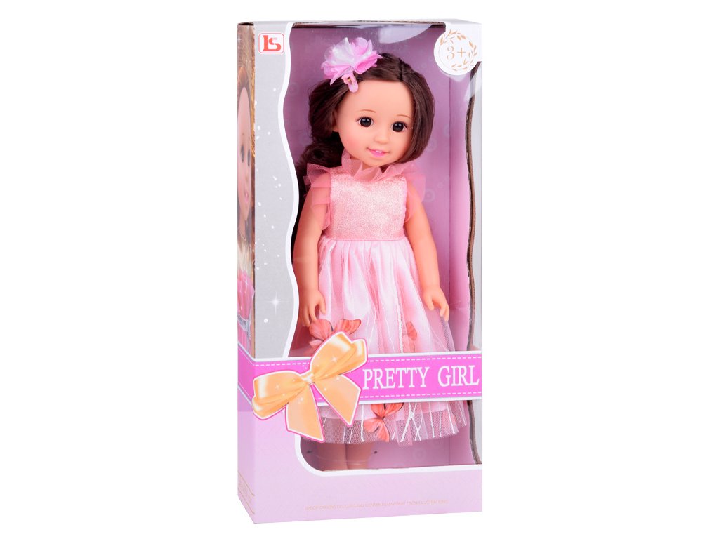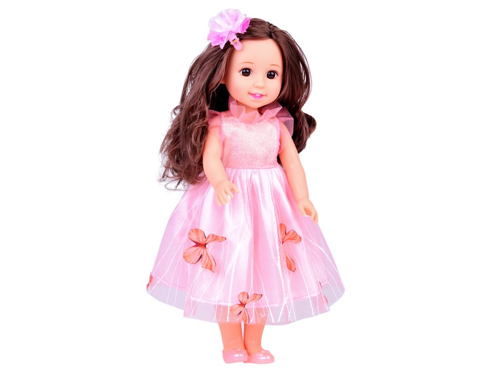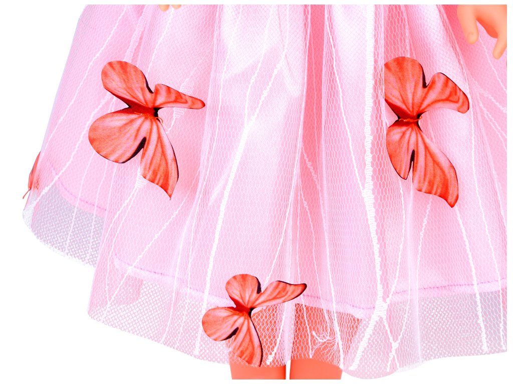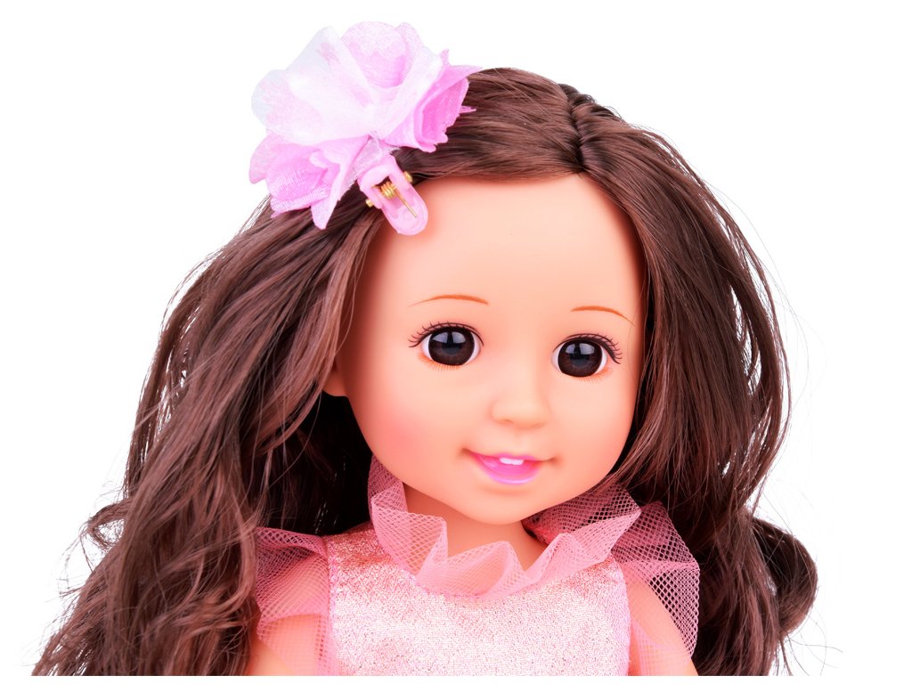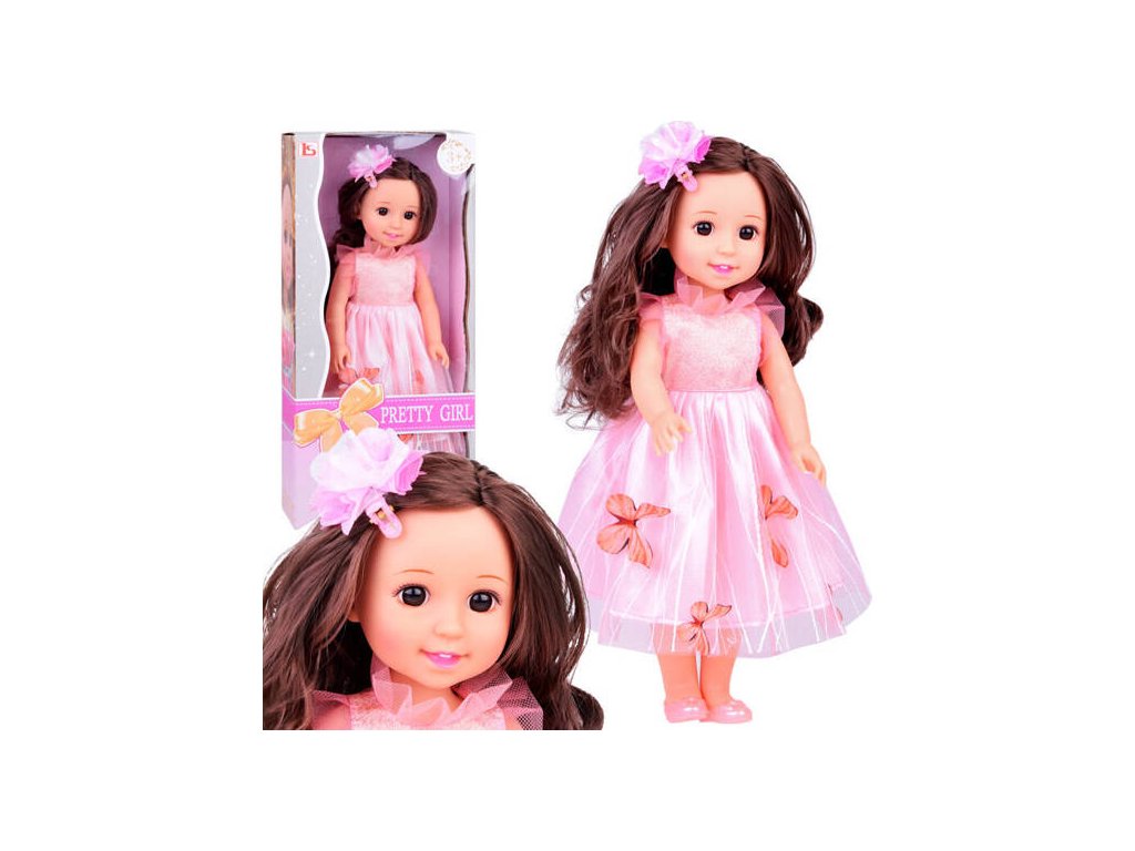 Gyönyörű baba 36 cm rózsaszín báli ruhában, hosszú hajjal