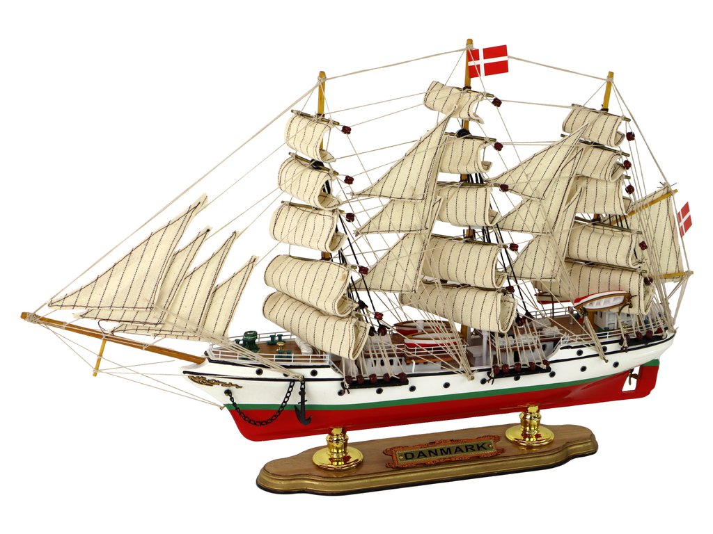 Ez a hajómodell a "Danmark" vitorlás. Ezt a nevet egy fa lábazaton helyezték el, ami hitelesebbé teszi és lehetővé teszi az adott hajó azonosítását. A vitorlás legtetején dán zászló látható, amely a hajó eredetét és az országgal való kapcsolatát hangsúlyozza.