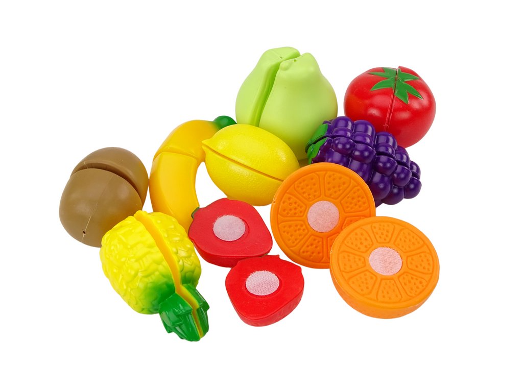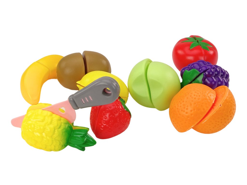 A gyümölcs a mellékelt késsel vágható, amelyet a gyermekek biztonságát szem előtt tartva tervezték - nincsenek éles szélei, ezért teljesen biztonságos a használata. A tépőzáras rögzítésnek köszönhetően a gyümölcsöt könnyű vágni, a gyerekek pedig nagyon jól szórakozhatnak, miközben fejlesztik kézügyességüket és szem-kéz koordinációjukat.
