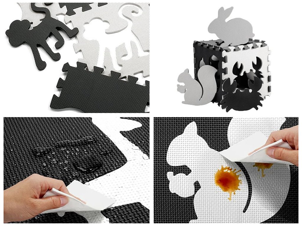 Az állatokkal készült habos puzzle ideális a legkisebb gyerekek számára. A készlet 16 részből áll. Az összehajtott puzzle puha játszószőnyegként szolgál. Az univerzális színkialakításnak köszönhetően minden gyerekszobába illeszkedik.