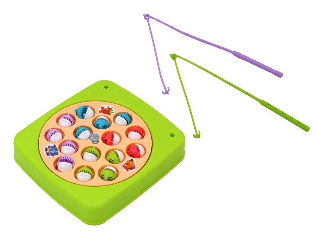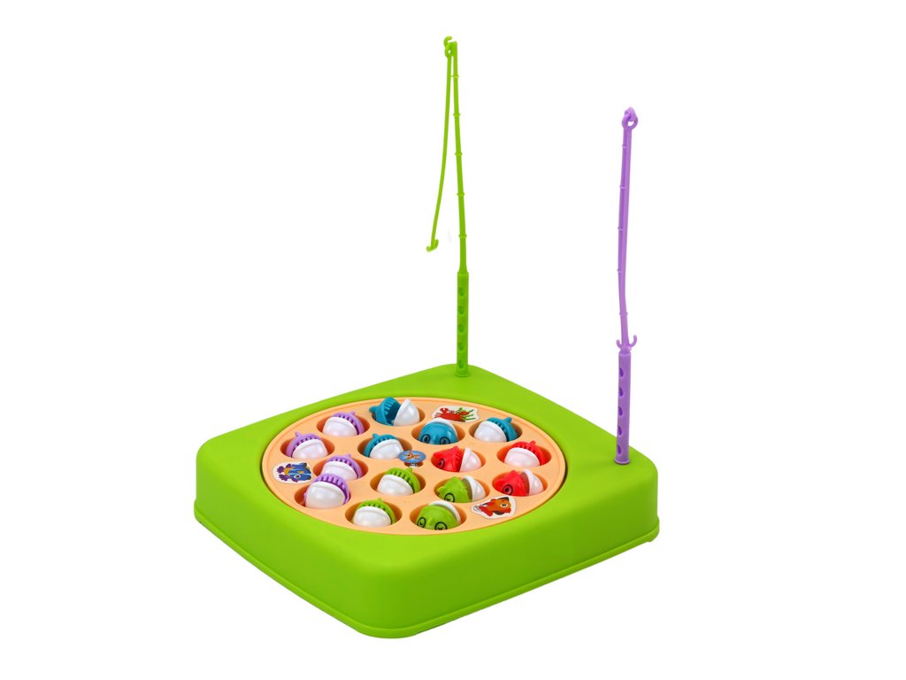 A horgász ügyességi játék egy imádnivaló és izgalmas szórakozás, amely a horgászat világába repíti a játékost. A készlet speciális botokat tartalmaz, amelyekkel a játékosok élénk színű halakat foghatnak. A játék elindítása után a játéktábla forogni kezd, és vidám dallam kíséri a játék kezdetét, vidám hangulatot teremtve.