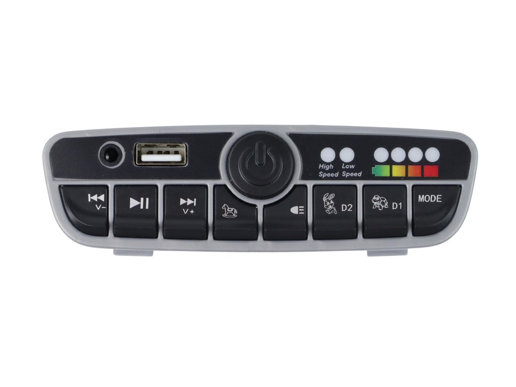 12V-os zenei panel nagyszerű kiegészítő a gyermek elektromos autójához. Ezzel a panellel közvetlenül az autójából játszhatja le kedvenc zenéit vagy hangeffektjeit. A panel kompatibilis a 12V-os áramforrásokkal, ami azt jelenti, hogy könnyen csatlakoztatható az autójához.