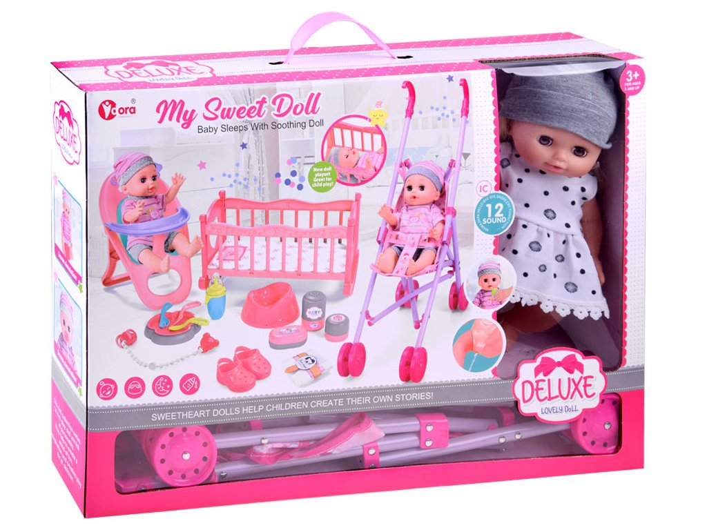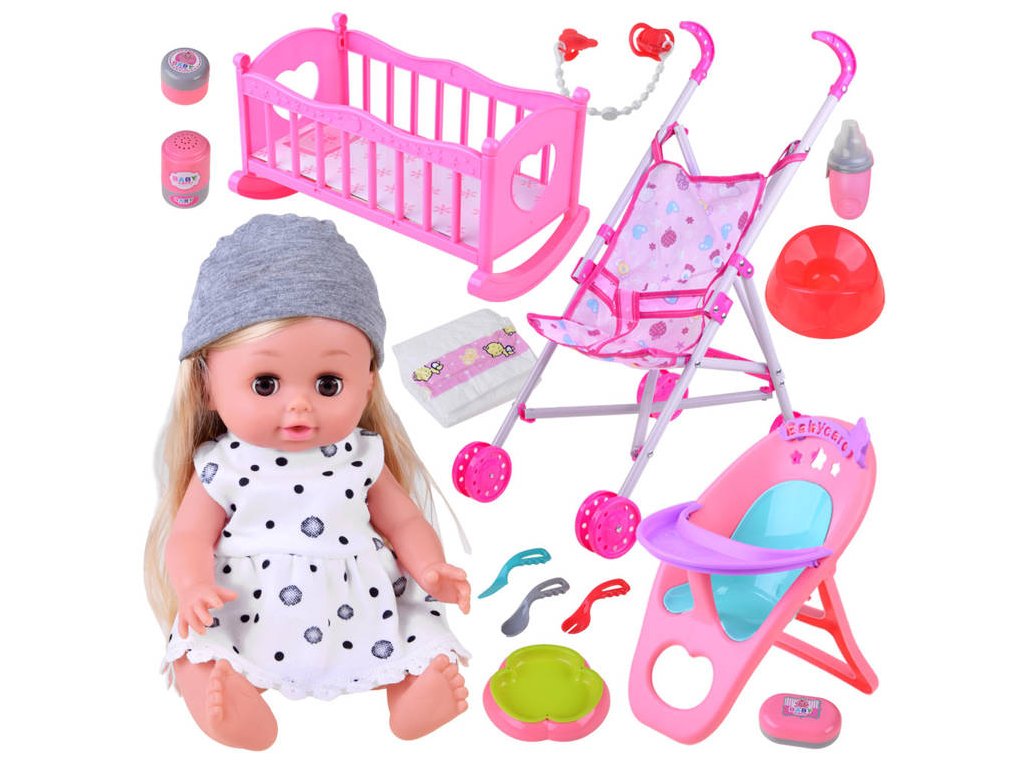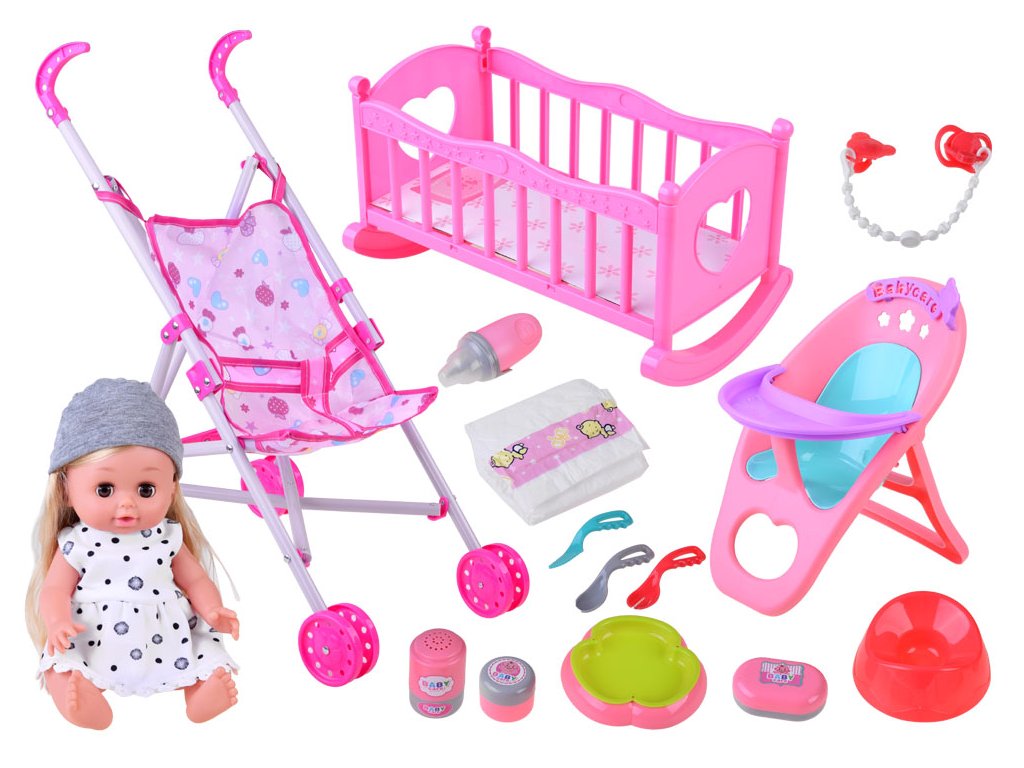 Díky tomuto bohatě vybavenému setu můžete o panenku pečovat a hrát si na domácnost, mámu nebo chůvu.