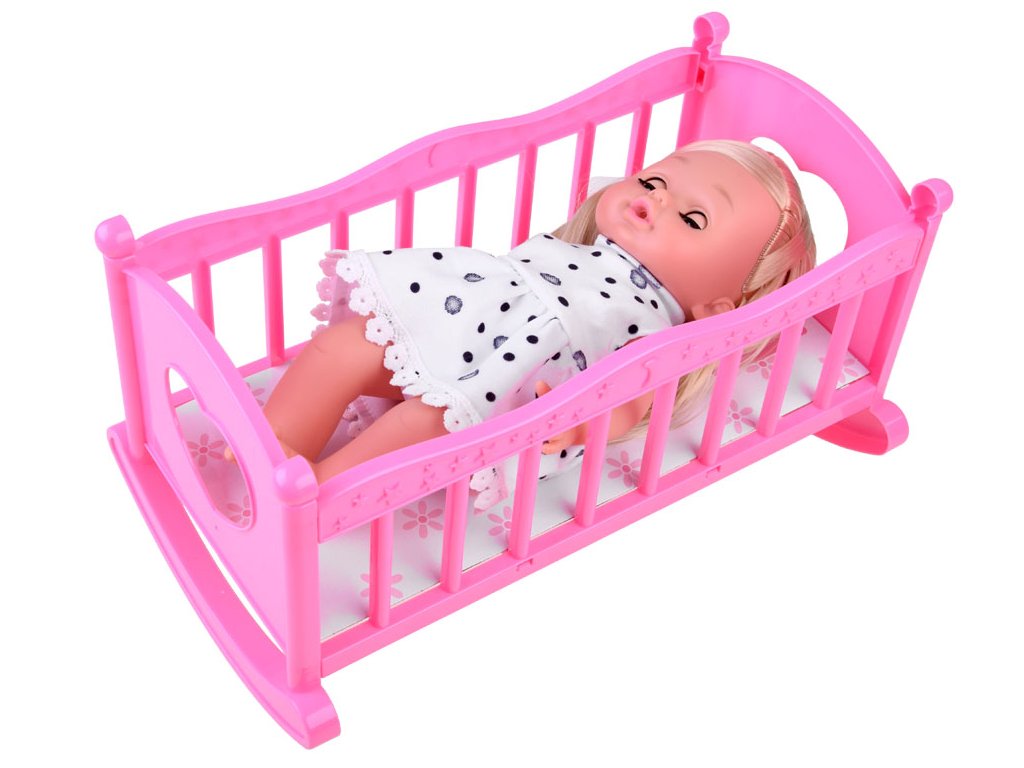 Po jídle je čas na spánek v pohodlné houpací postýlce. Rám postýlky je vyroben z plastu, dno pak z pevného kartonu s květinovým potiskem. Na růžovém rámu postýlky jsou vyráženy hvězdičky a měsíc.