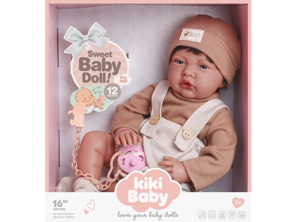 Az interaktív Kiki Baby baba bézs színű készletben tökéletes választás minden fiatal gondozónak, aki szeretné utánozni a felnőttek világát és átélni a baba gondozásának örömét. A 40 cm magas baba elég nagy ahhoz, hogy valósághűnek tűnjön, elegáns bézs színű, sapkával és finom részletekkel díszített kombinéja pedig aranyos és barátságos megjelenést kölcsönöz a játéknak.