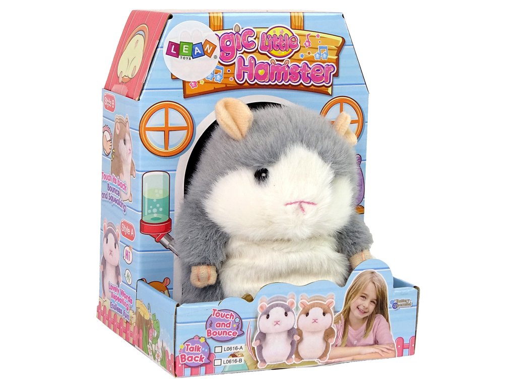 Křeček opakuje slova, která slyší, díky speciálnímu záznamovému systému. Navíc se pohybuje s každým vysloveným slovem a tančí.