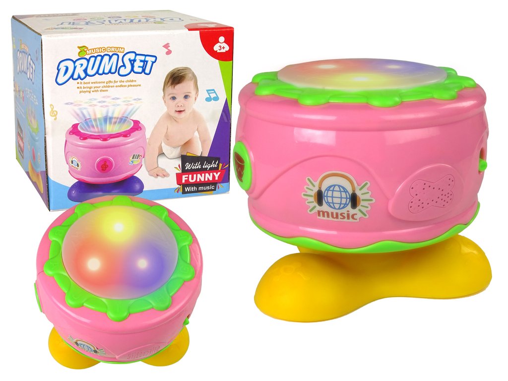 Tento hudební bubínek je vybaven regulátorem hlasitosti, který zaručí příjemné používání hračky jak pro dítě, tak i pro jeho rodiče. Hračka přehrává melodie, které jsou příjemné pro ucho, a zároveň blikají světla. Při každém úderu do bubínku dítě uslyší veselou melodii s rytmem bubnů a rozsvítí se barevná světla. Bubínek dokáže rotovat o 360 stupňů, během točení hračky je slyšet dětský smích. Na stranách bubínku jsou navíc dva funkční klávesy, které aktivují další různé melodie a světelné efekty. Hračka je velmi pečlivě a precizně zpracována a potěší každé batole. Rozvoj dítěte, zejména jeho motorických dovedností, je významně stimulován jeho okolím. Proto je tak důležité, aby hračky, s nimiž se dítě hraje, podporovaly vylepšování motoriky a učily nové pohyby a dovednosti.