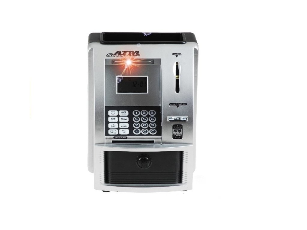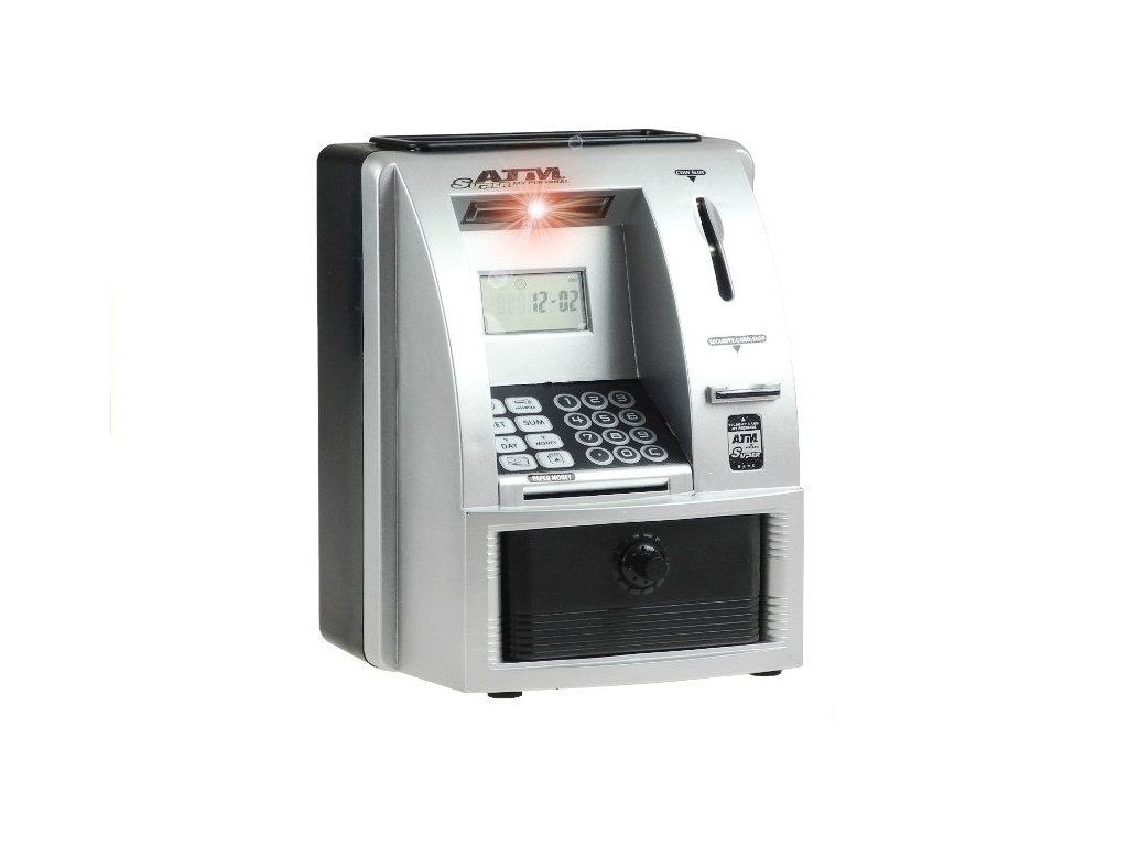 Az ATM formájú pénztárgép nagyszerű módja annak, hogy megtanítsuk a gyerekeket a megtakarításra és a kiadások tervezésére. Ez a klasszikus pénztárgép modern alternatívája olyan valósághű funkciókat kínál, mint a pénz be- és felvétele, PIN kód beállítása, riasztás a fiók hosszabb ideig tartó kinyitásakor, valamint a dátum és az idő beállítási lehetősége.