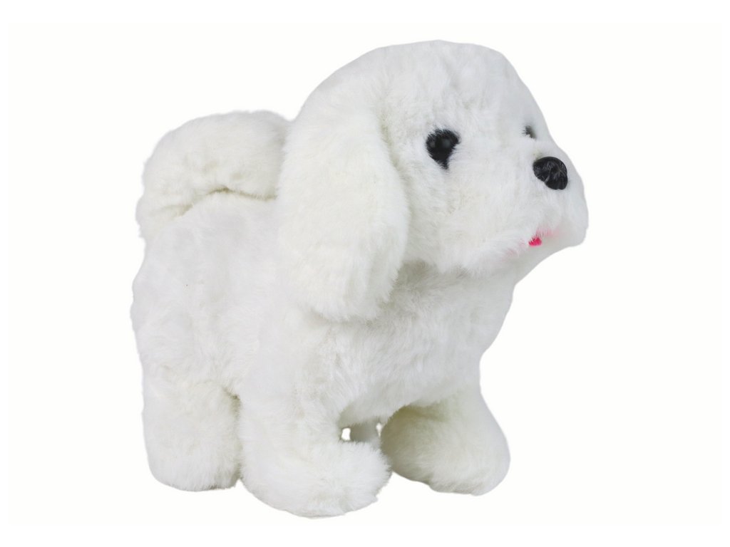 Interaktív játék - fehér ugató kutya, amely tud járni