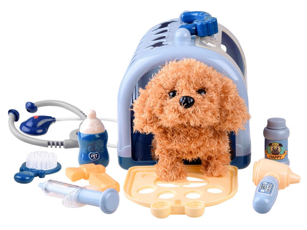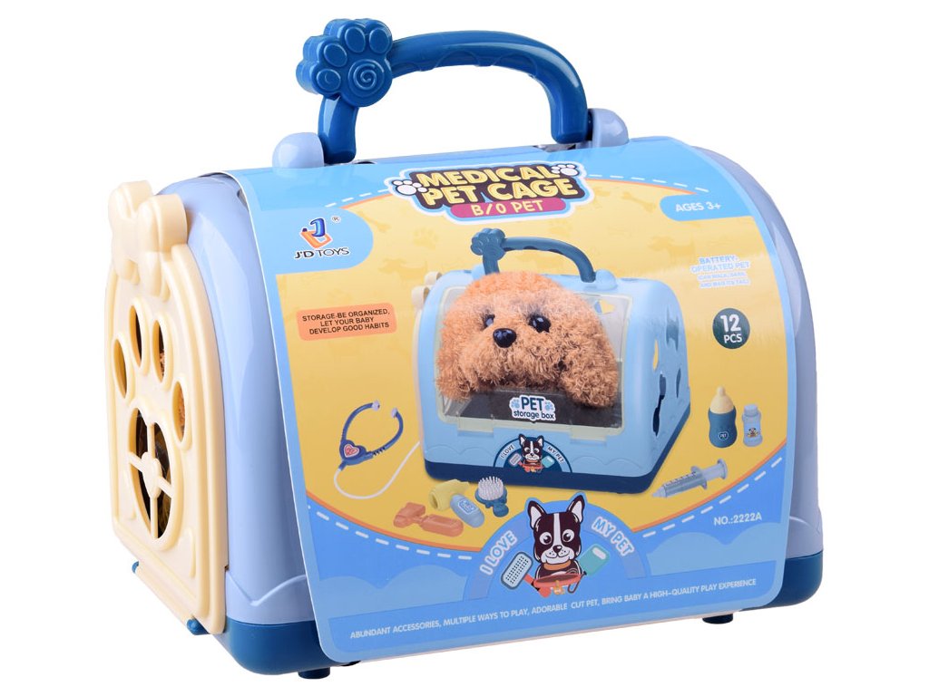 Sada obsahuje přenosný box pro pejska a veterinární příslušenství, které splní požadavky malého veterináře při poskytování péče o zvířátka. Děti se nejvíce učí hrou, a tento set zajistí, aby si každý malý majitel pejska staral o svého miláčka.