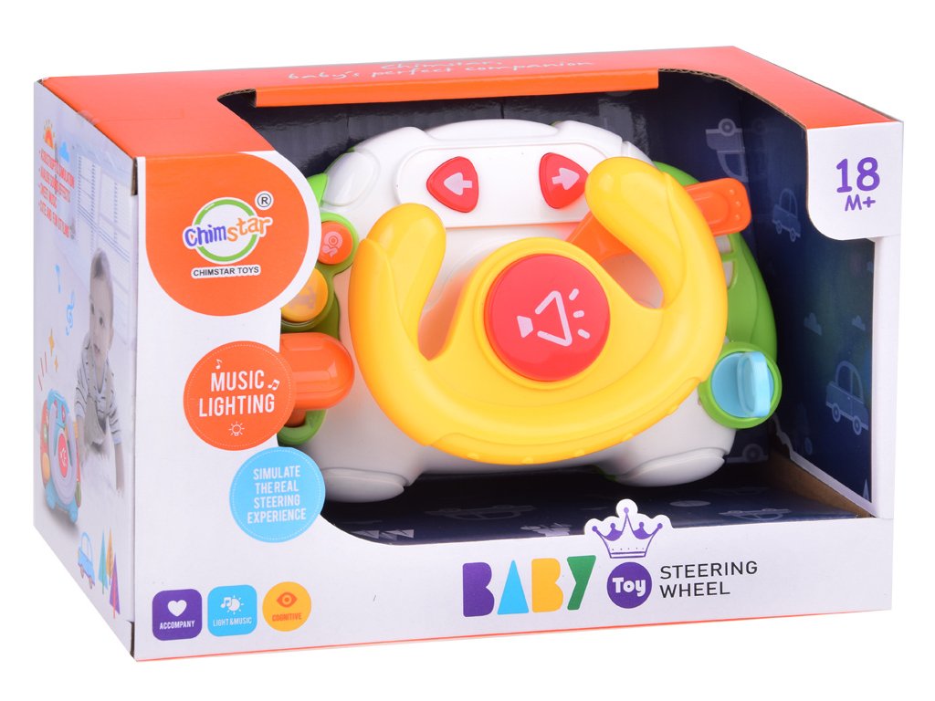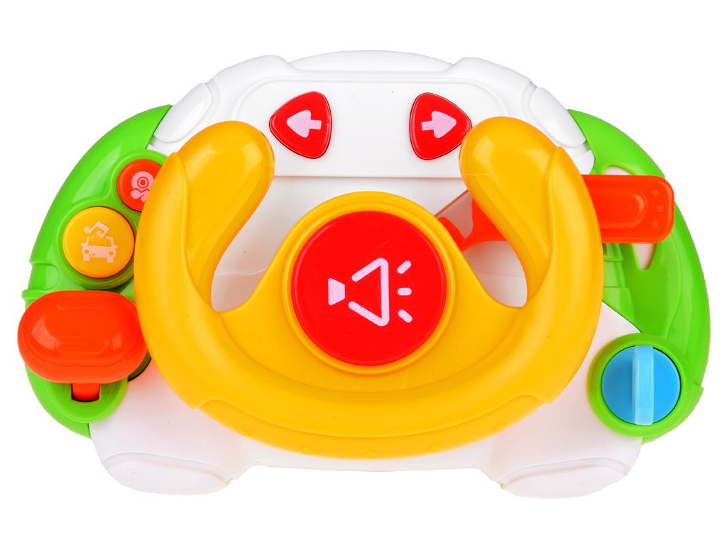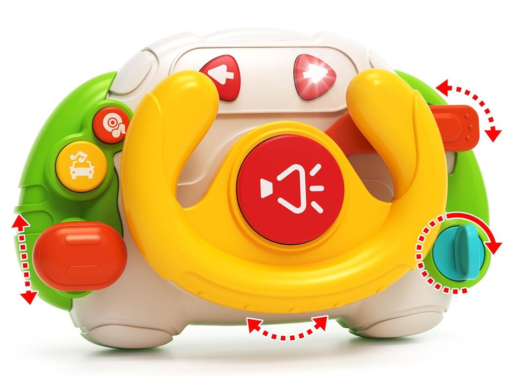 Interaktivní senzorický volant s tlačítky je skvělá hračka pro děti, která je na chvíli zabaví na cestách.