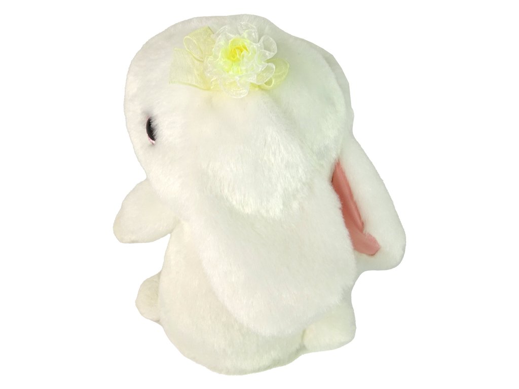 Tento roztomilý králíček je perfektním parťákem na hraní pro děti. Je mimořádně přátelský a jeho dlouhé uši, okouzlující růžové oči a ozdobná tylová květina na hlavě mu dodávají nevšední kouzlo.