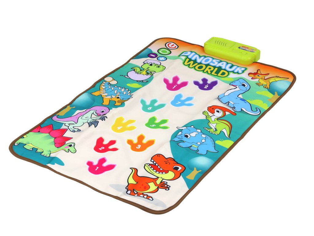 A Dinosaurs táncoló zenés interaktív oktatószőnyeg egy olyan eszköz, amely nemcsak táncra motiválja a gyerekeket, hanem fejleszti kreativitásukat és aktivitásukat is. Gyönyörű, színes dinoszaurusz-képekkel díszítve, nem csak remek játék, hanem egy gyerekszoba aranyos dísze is. Speciális érzékelők reagálnak a gyermek mozgására, ami lehetővé teszi számára, hogy teljes mértékben interaktívan részt vegyen a játékban. A szőnyeg beépített hangeffektusokkal és dallamokkal rendelkezik, amelyek növelik a hangulatot tánc és játék közben.