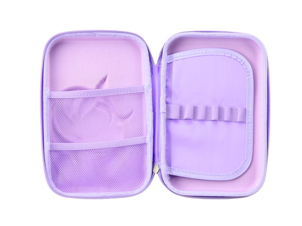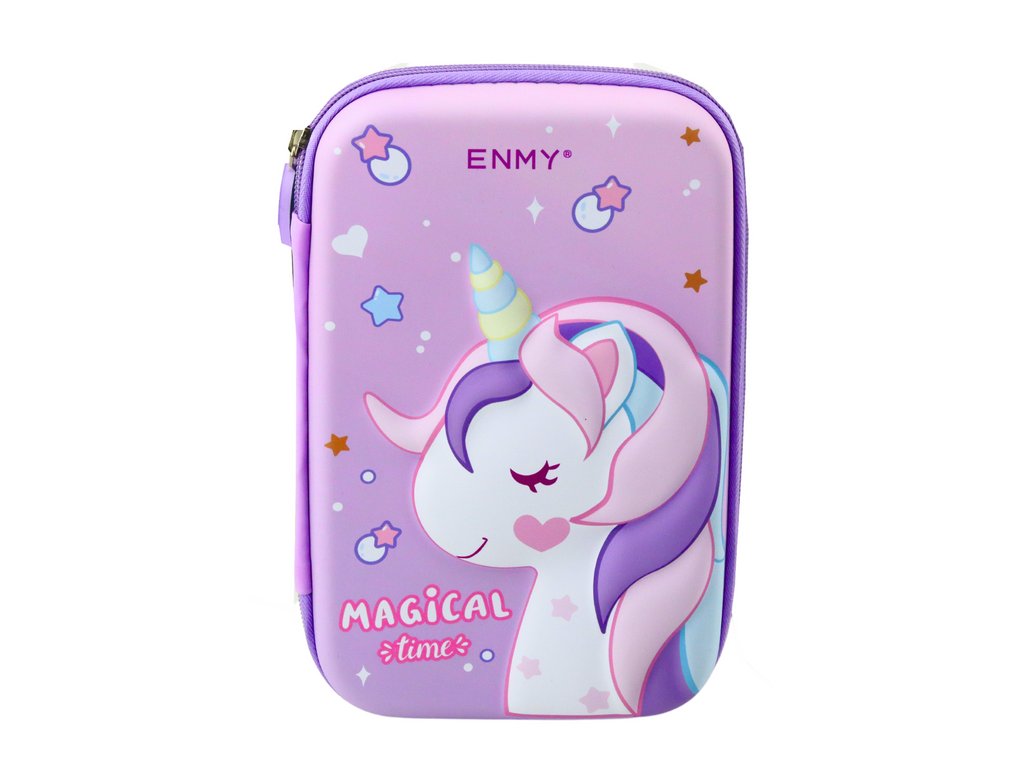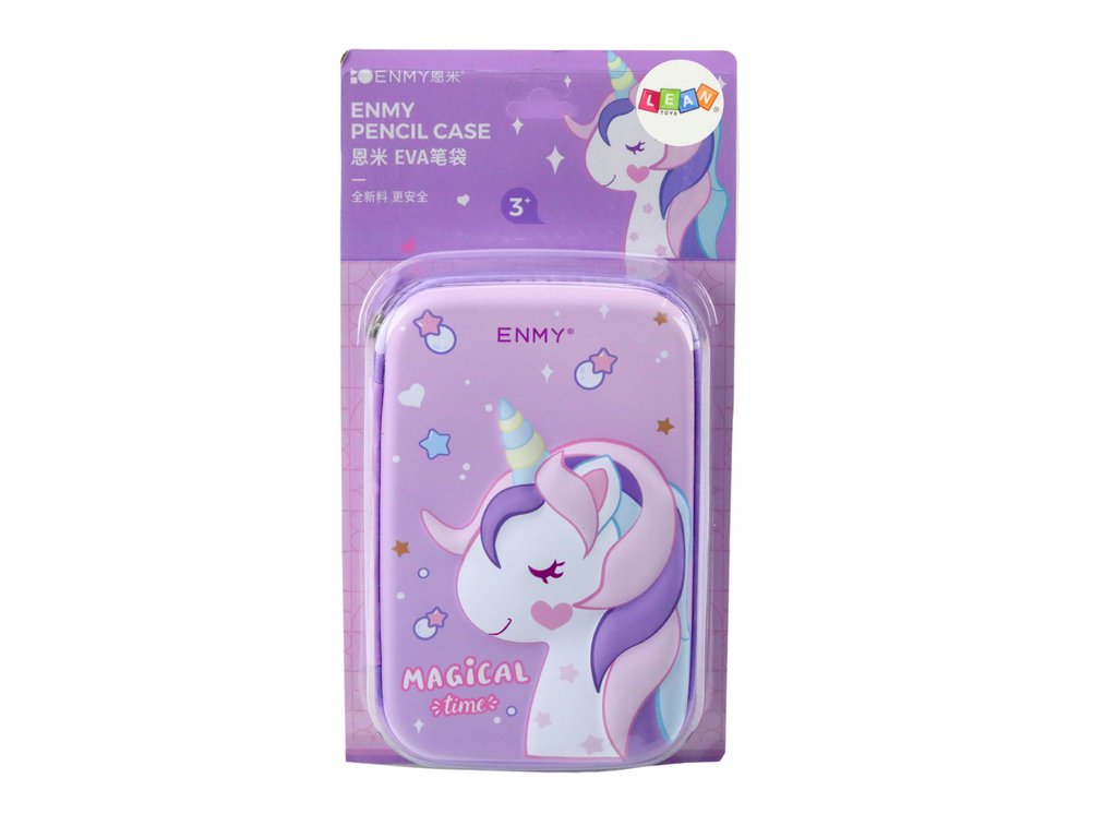 Iskolai összecsukható tolltartó Unicorn 3D-vel 23x15x5 cm lila