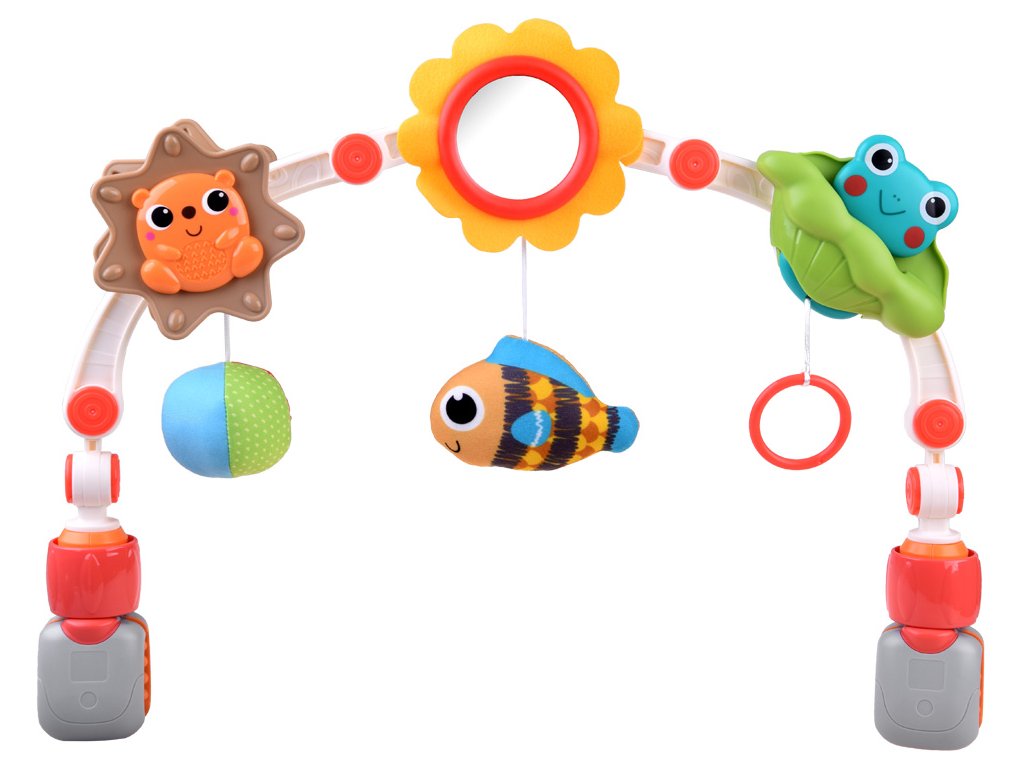 A babakocsihoz , székhez és autósüléshez való színes sáv minden baba figyelmét felkelti. A járóka nagyon könnyen összeszerelhető és dőlésszöge állítható, így könnyen alkalmazkodik a baba igényeihez. A játék támogatja a gyerekek megragadását, durva motoros készségeit, koncentrációját és megismerteti a gyermeket az első formákkal és színekkel. A kapu univerzális tartóval rendelkezik, így problémamentes szerelést biztosít.
