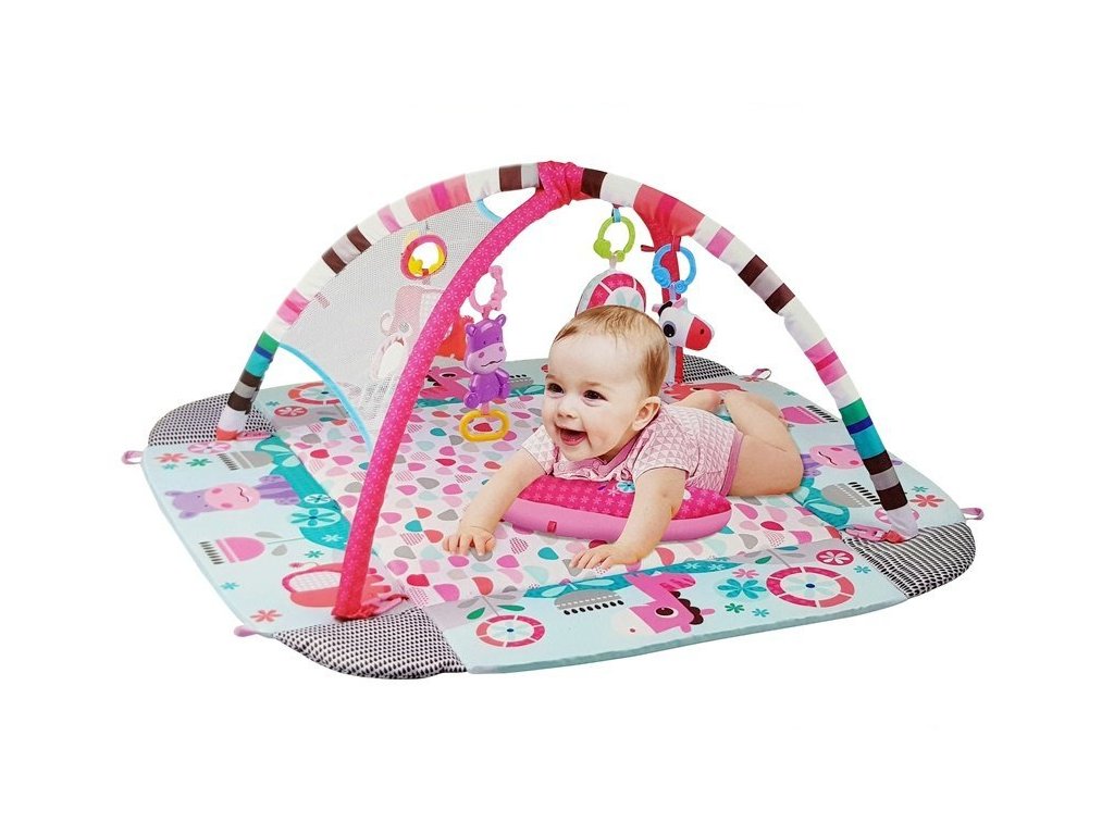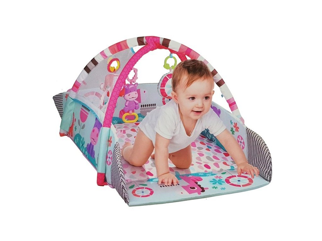 A játszótakarónak 5 különböző lehetősége van: játszótakaró rácsokkal, csak játéktakaró, oldalt összehajtva, medencét alkotva vagy rácsokkal. A színes dizájn felkelti a gyermek kíváncsiságát és segíti a látás fejlesztését. A termékhez golyók tartoznak, amelyeket a medencébe lehet dobni, hogy felejthetetlen szórakozást nyújtsanak. A készlet tartalmaz egy elemes vízilót, csak húzd meg a fogantyút és hallgass zenét.