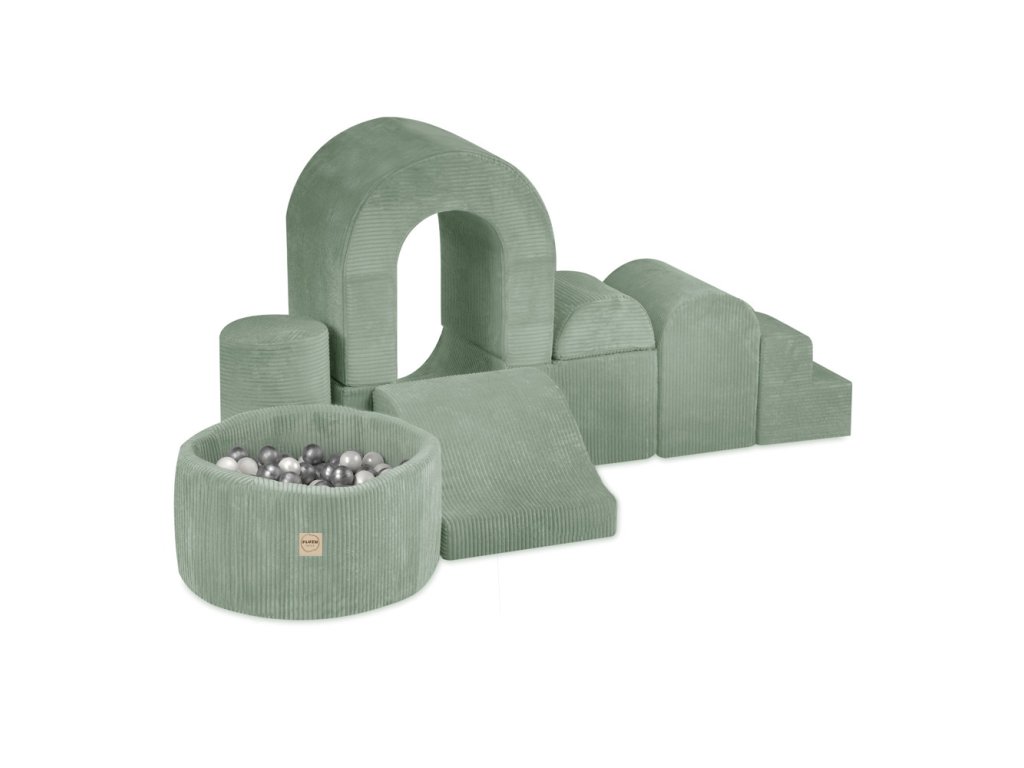 Játszóvár medencével és 150 labdával Prémium zöld kordbársony